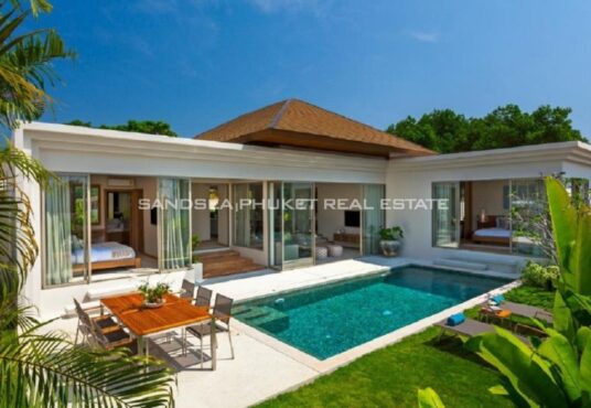 Located in the serene and highly desirable Pasak area of Phuket, this exquisite private pool villa is a true expression of refined tropical luxury. The architecture showcases soaring vaulted ceilings, elegant natural wood accents, and expansive floor-to-ceiling glass that fills the interiors with natural light. The open-plan living and dining spaces flow seamlessly into the […]