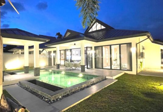 85,000,000 ฿This exceptional private pool villa offers a refined blend of modern tropical architecture and resort-style living. Designed with spacious open-plan interiors, the villa features floor-to-ceiling glass doors that seamlessly connect the living spaces to a large private swimming pool and manicured garden. The upper floor provides generous bedrooms with private balconies, creating a perfect balance […]