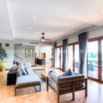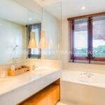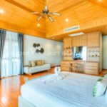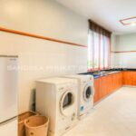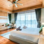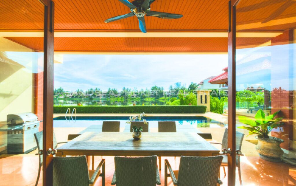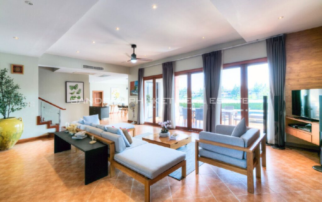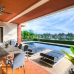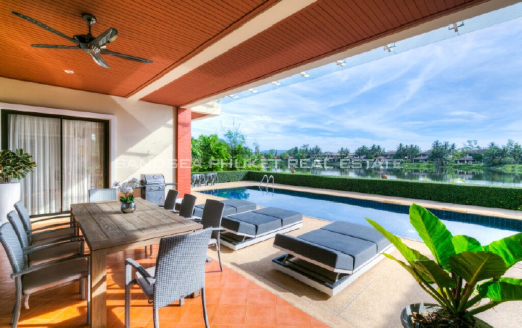 The villa is designed in Thai architectural styles and mainly emphasizes comfort by decorating with fine woodwork. The house interior offers a high ceiling and a large door to let the natural breeze flow freely. The villa is fully furnished. Although the interior is beautiful, you’ll have to spend most of your precious time outdoors because the villa is well-designed. There is a large swimming pool, jacuzzi, and loungers on the terrace, allowing you to enjoy the pool and lake views at the back of the house.