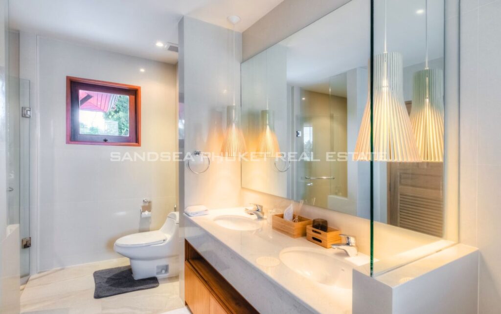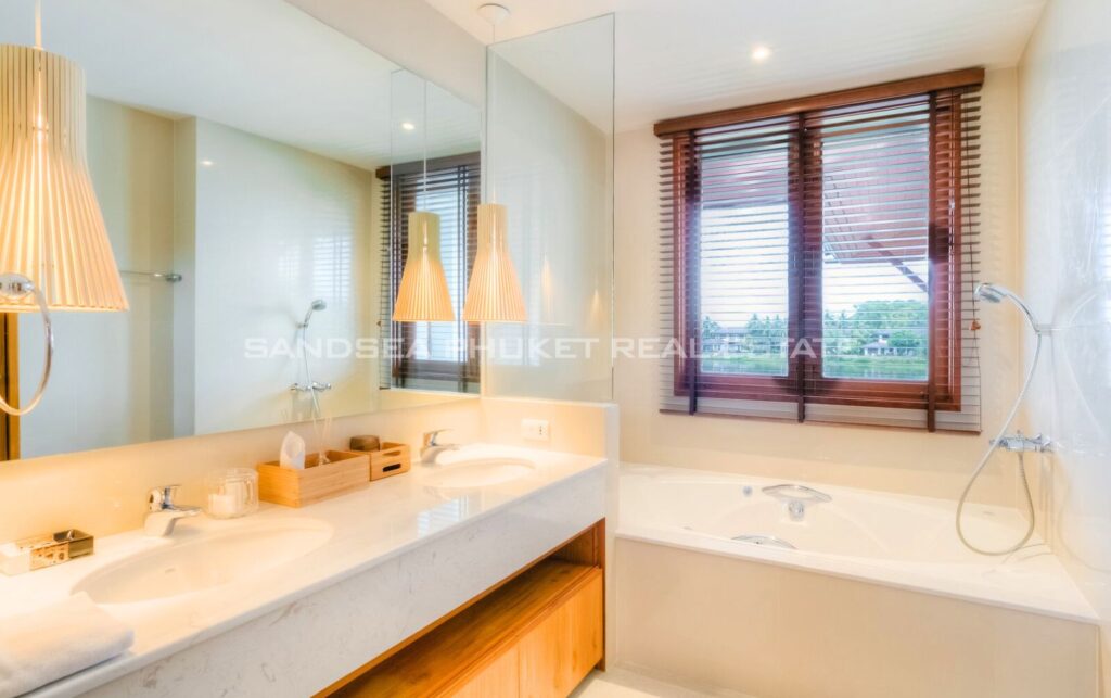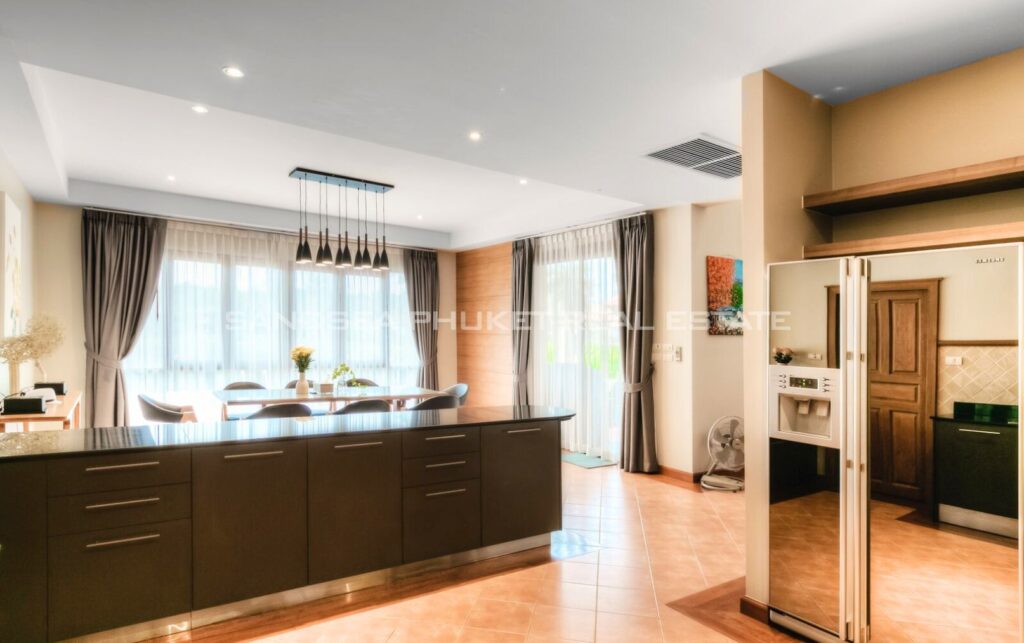 This villa is a peaceful residential home located in the Laguna zone, one of Phuket‘s most luxurious and complete locations surrounded by lush greenery behind the lake. The villa provides a comfortable atmosphere and is suitable for relaxation. There are various activities you can enjoy and experience the sunset atmosphere in the evening. The project is only 1.3 kilometers from Bangtao Beach.