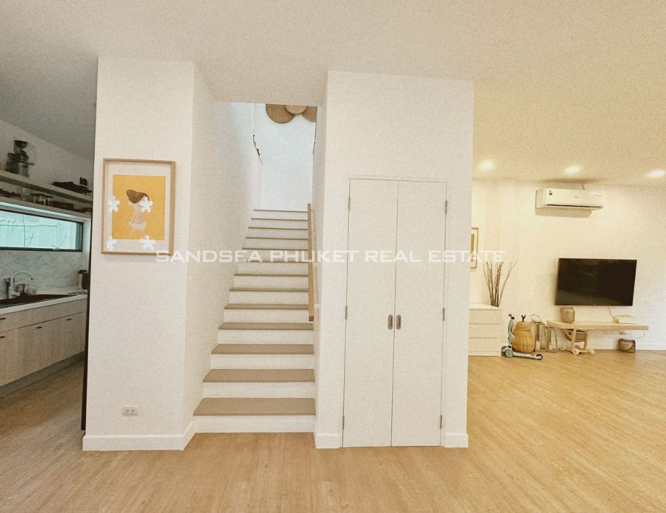 This two-storey minimalist home embodies refined simplicity through a thoughtfully curated design, featuring white and soft light-brown tones complemented by natural wood-pattern furniture. The harmonious color palette creates a calm, inviting atmosphere, while abundant natural light enhances the sense of openness and tranquility throughout the living spaces. Each area is carefully planned to flow seamlessly—from the living and dining areas to cozy relaxation corners—resulting in a home that feels both elegant and effortlessly comfortable.