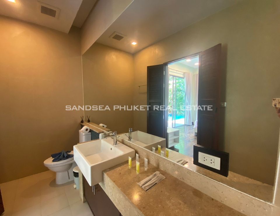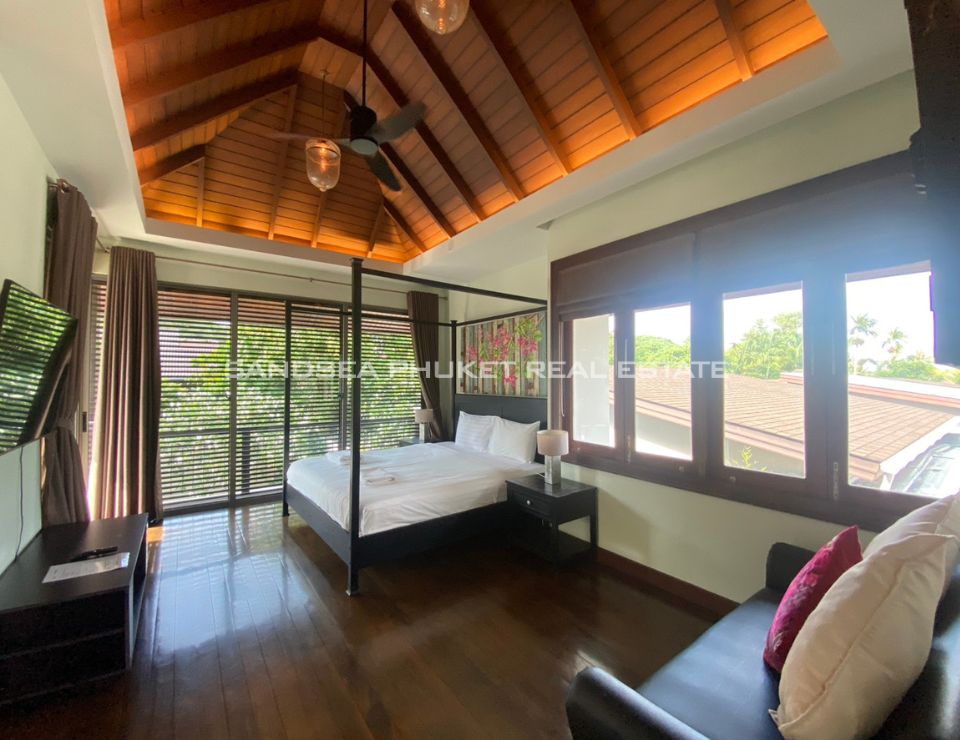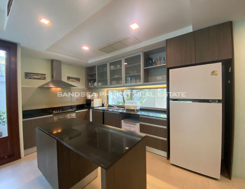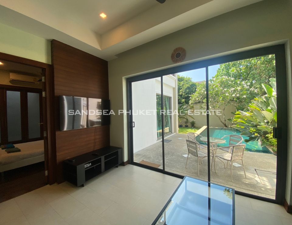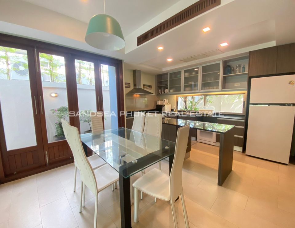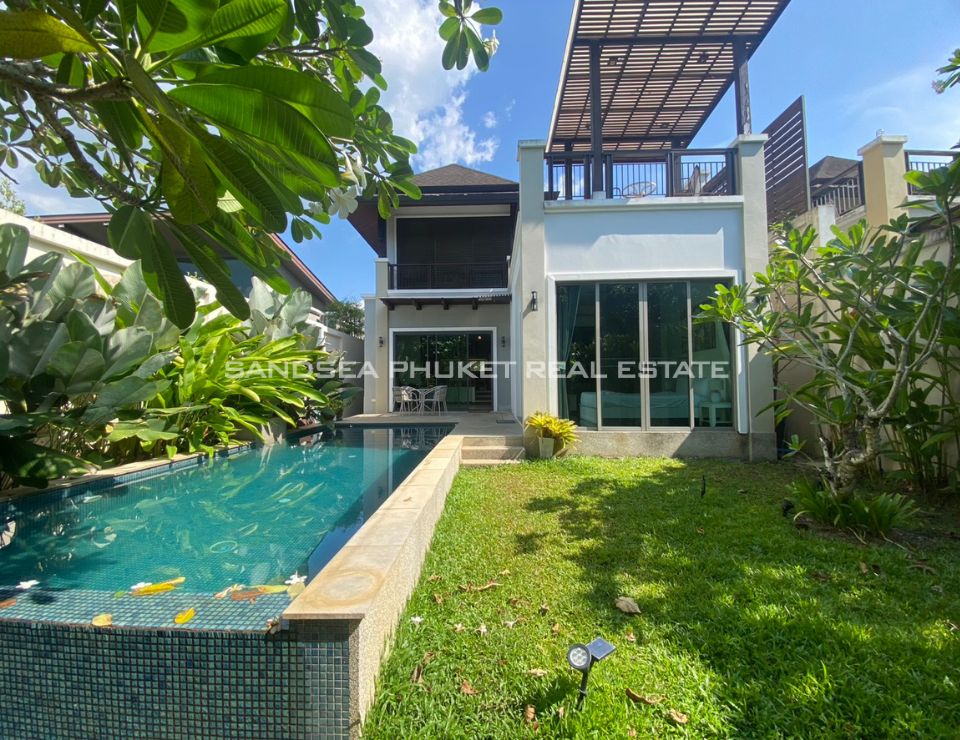 This is a modern tropical pool villa, located on the edge of Cherngtalay on the way to Heroine’s Monument, a little over 5 minutes by car from Boat Avenue and the Laguna Phuket resort complex. Popular beaches including Bangtao, Layan, and Surin are around 10 minutes’ drive. The villa has features cozy bedrooms, all with ensuite bathrooms, and the master bedroom comes with walk-in closets. The villa boasts high ceiling open-plan living and dining areas with fully equipped western kitchens. Private swimming pool and garden with a reasonable size with space for relaxation or children to run around. It is an Ideal as a holiday home or permanent family residence.