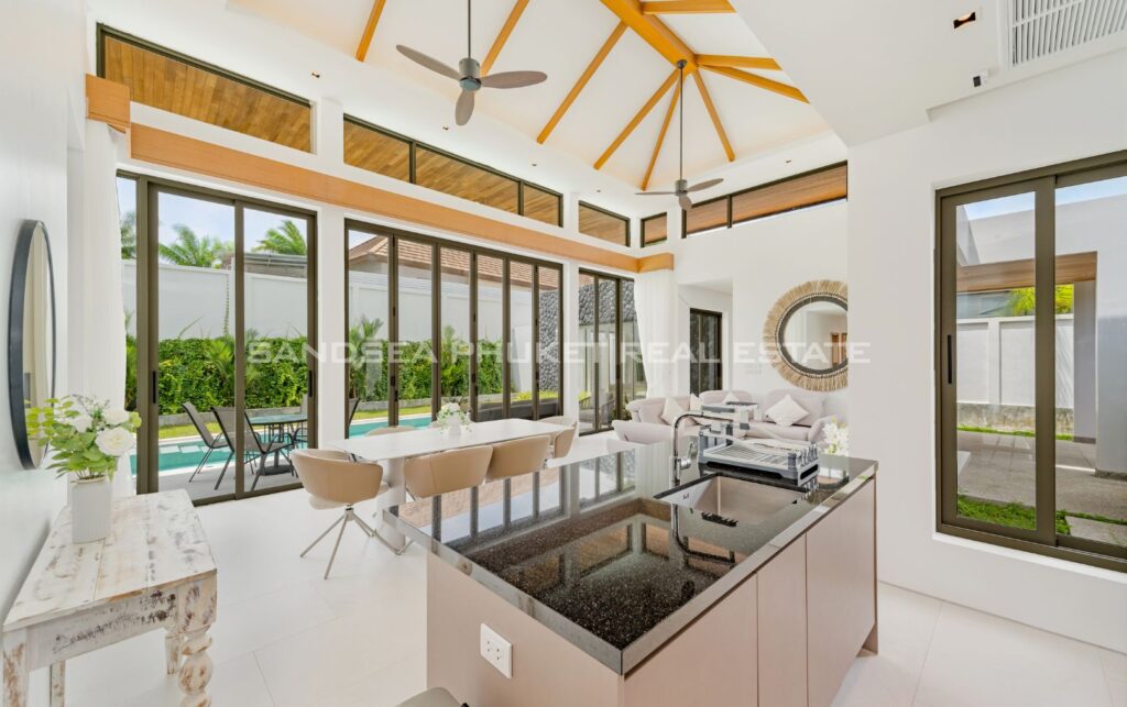 This location offers lovely breezes due to its elevated position. It is superbly located for peace and quiet, yet just a short drive in any direction leads you to white sand and blue water beaches, restaurants, and the boutique shopping areas of Boat Avenue, Laguna, Bang Tao, or Surin. Enjoy the new nightclub and the uncrowded soft white sand beaches of Layan and Bang Tao, which feature several beach clubs for relaxing, dining, and taking in stunning sunsets.