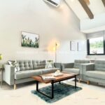 This cozy villa style is ideal for a young family with a small child or a retired couple who wish to have additional bedrooms for visitors. All three bedrooms have en-suite bathrooms. The exterior garden space provides a comfortable environment while remaining manageable in terms of maintenance and upkeep.
