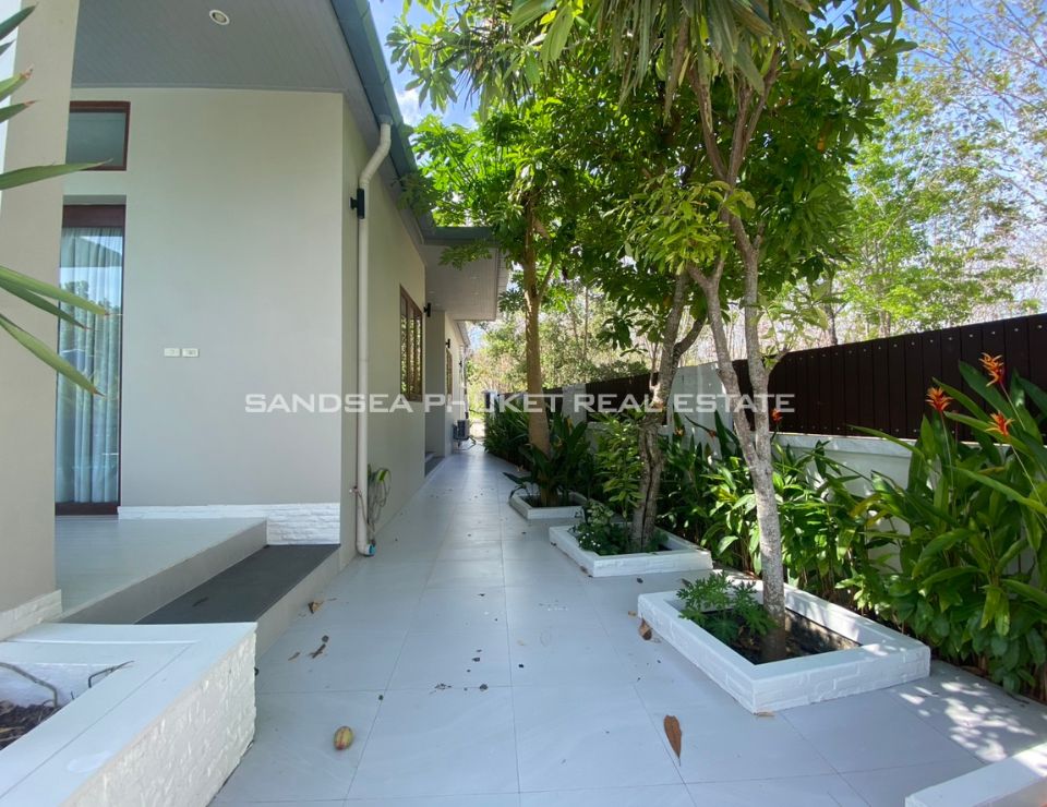 Adding even more privacy, the villa includes a detached bungalow with its own bathroom, ideal as a fourth bedroom or guest suite. The property is fully walled, with a neat tiled yard for easy maintenance, complemented by trees and greenery along the front walls. Situated on a desirable corner lot, the villa provides convenient access with an electric carport entrance from the main road and separate pedestrian gates along a private lane. Designed for both comfort and practicality, this villa is an inviting home or holiday retreat.