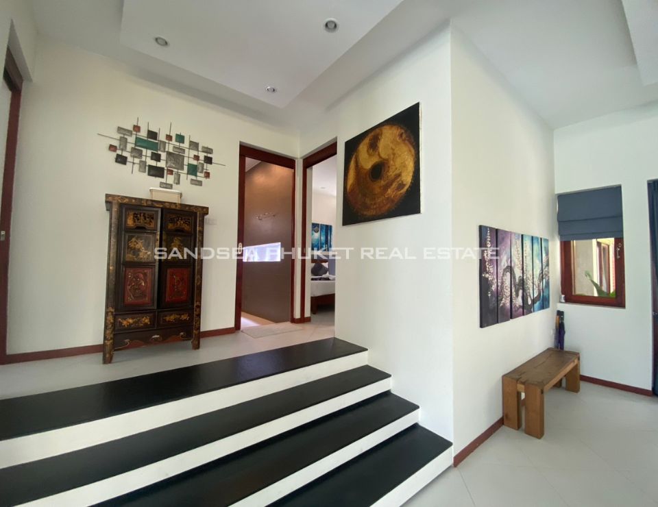 This charming villa offers an ideal blend of comfort, functionality, and privacy. The main house features a spacious open-plan living, dining, and kitchen area with seamless access to the pool and outdoor terrace—perfect for entertaining or relaxing. The generously sized master bedroom comes with an ensuite bathroom and direct poolside access, creating a serene retreat. On the opposite side of the house are two additional bedrooms, which share a bathroom and offer flexible use as guest rooms, a home office, or a combination of both. A unique lower-level bedroom is accessible through one of the upper rooms, making it a versatile space for family or visitors.
