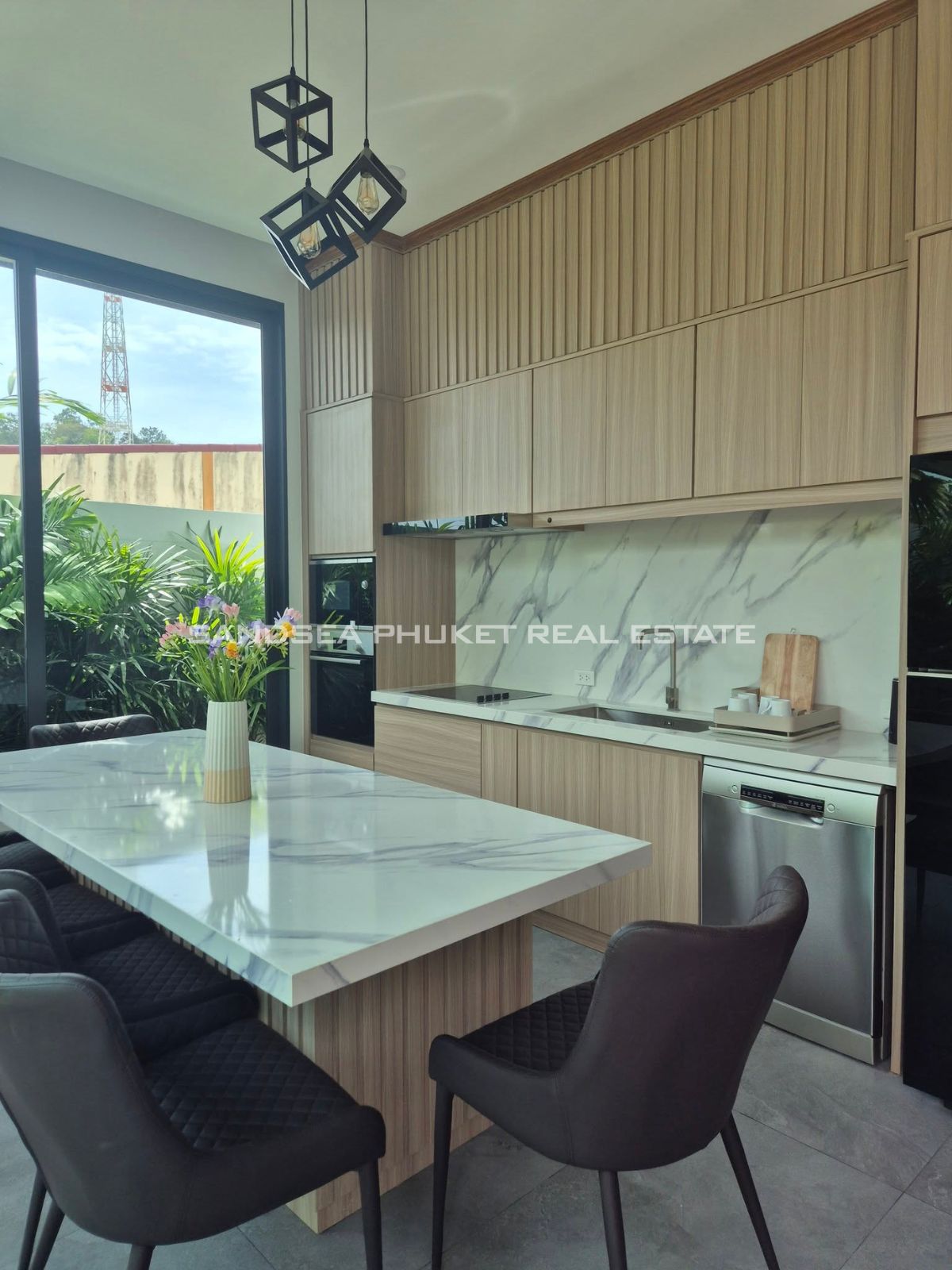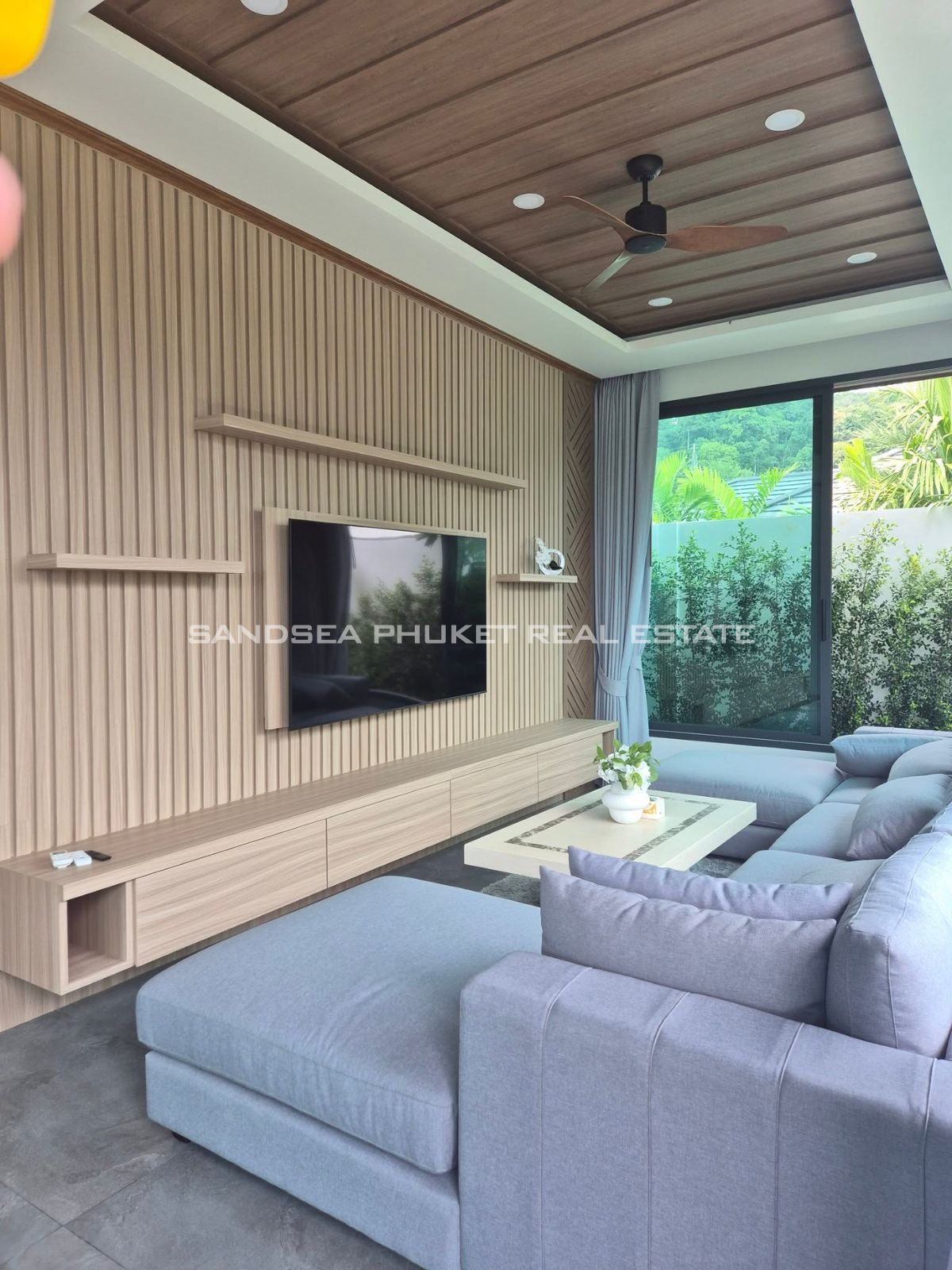 This beautifully designed 3-bedroom, 3.5-bathroom private pool villa offers generous living spaces that feel open, comfortable, and perfectly suited for everyday living. Fully furnished with high-quality interiors, the villa features a large sofa and a 75-inch TV, creating a welcoming atmosphere for relaxation and entertainment. The fully equipped kitchen comes complete with modern appliances, including a dishwasher, making daily life effortless and enjoyable.