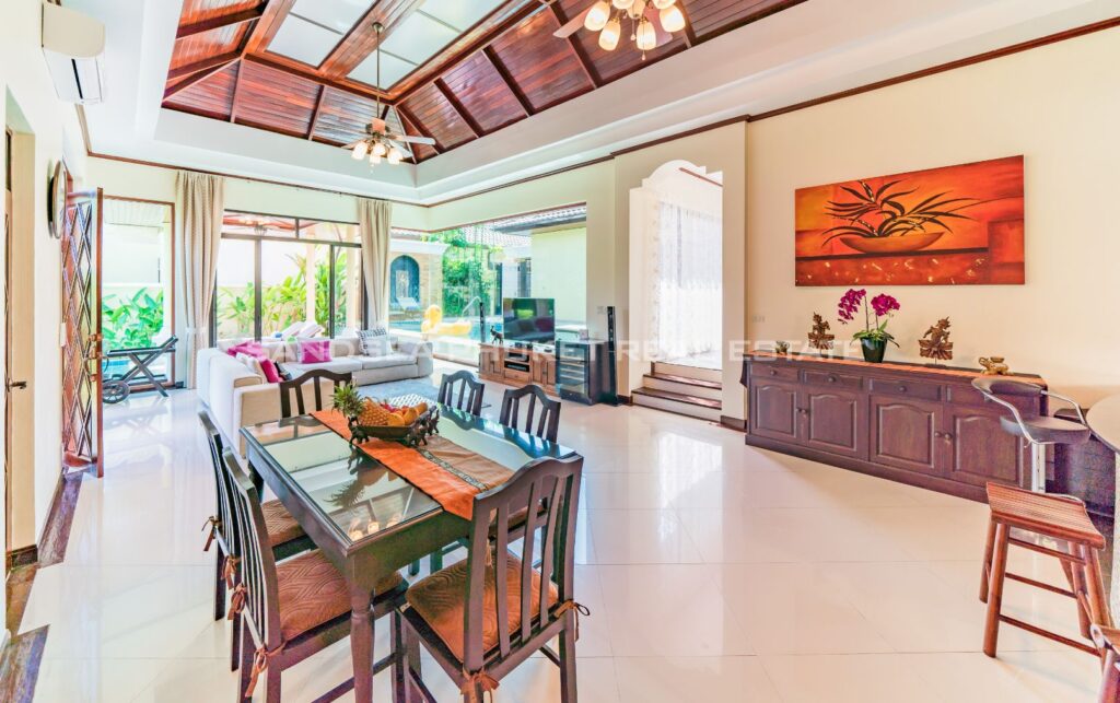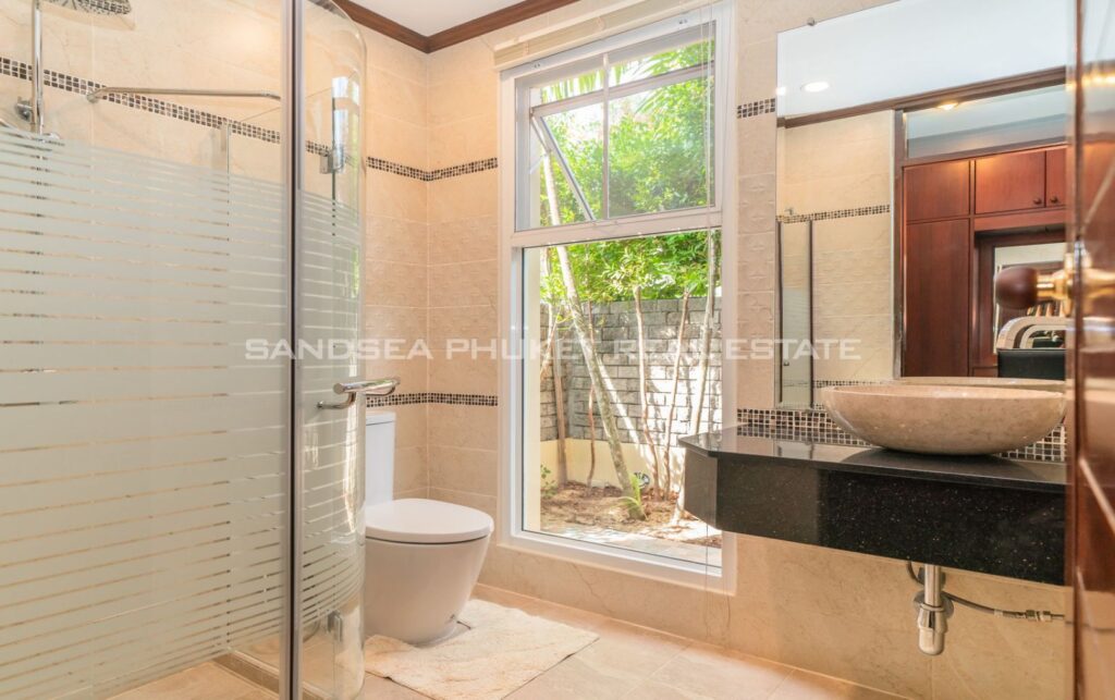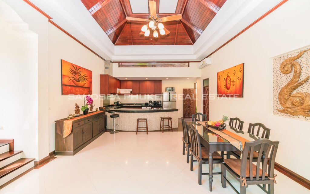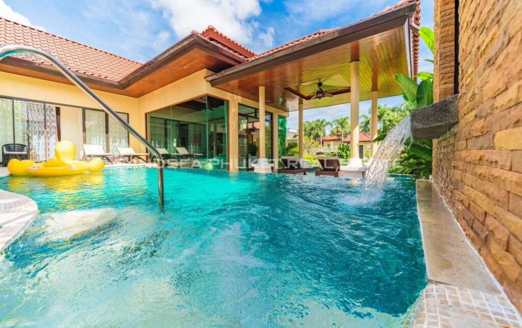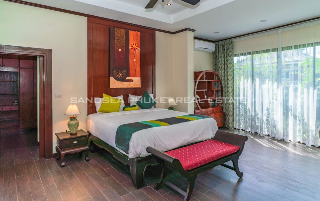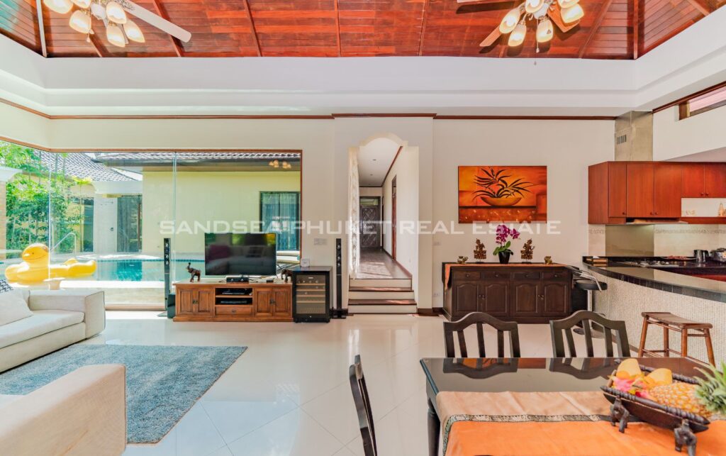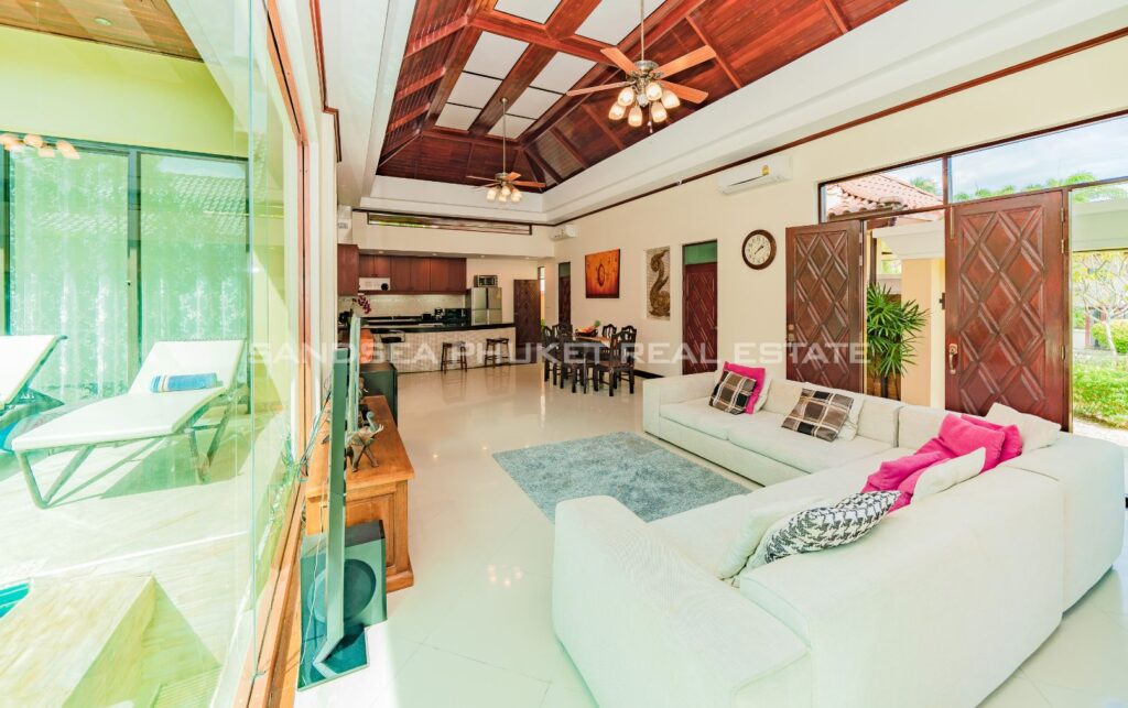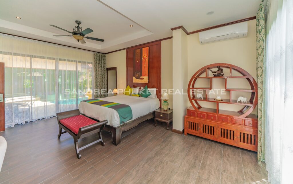This villa is perfect for people attracted by nature and warmth. Set among tall shade trees, fresh and natural breezes, mountains and the sea. It is the perfect place to enjoy all that Phuket offers. The villa sits in Bangtao, in peaceful community near Laguna. The villa has easy access to Banyan Tree, and nearby attractions include Layan beach, Bangtao and Surin beach. The villa has an open plan living area which blends seamlessly with the pool terrace and green environment. The formal dining area sits adjacent, and the full western kitchen is well-planned with an impressive U-shaped design. The bedrooms all feature built-in wardrobes, ensuite bathrooms, and elegant, modern Thai furnishings. The master suite features an open air jacuzzi. Each room has individually controlled air-conditioning. The pool is a generous 8×4 m. there is also a second, shaded lounge area toward the front of the house with garden views. *The rate includes pool cleaning, gardening, cable TV and internet.
