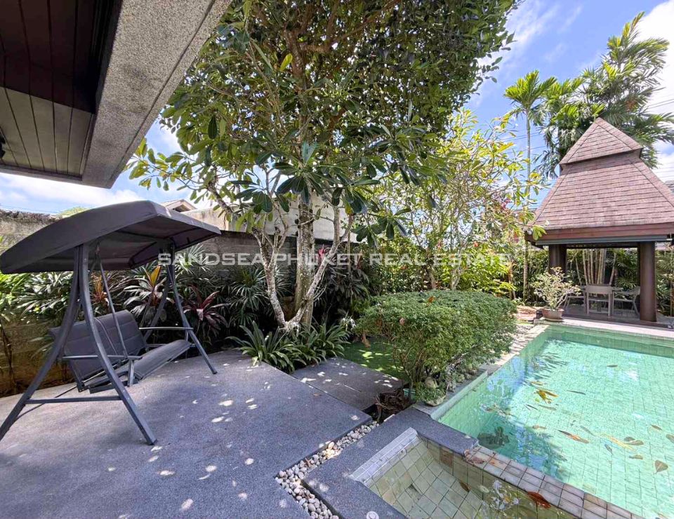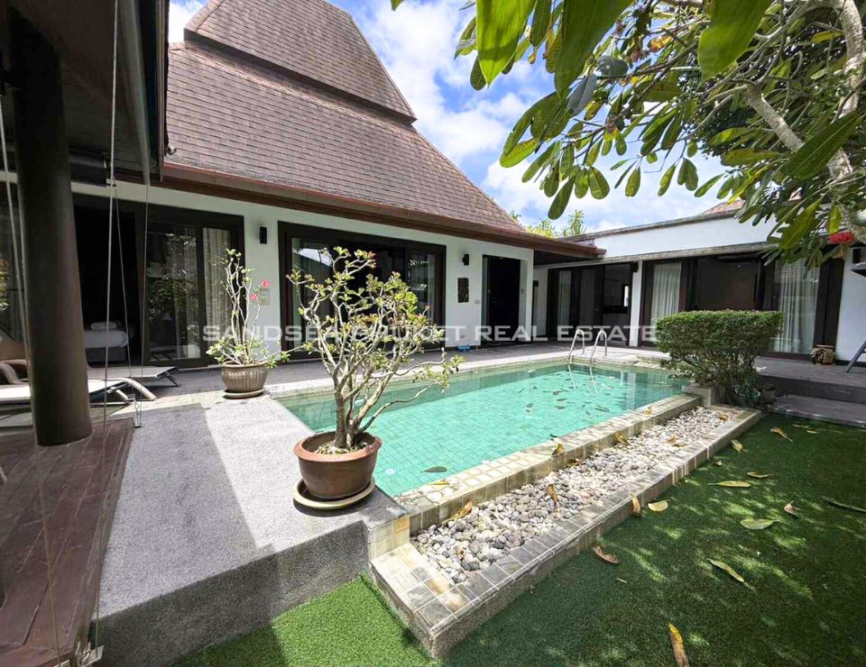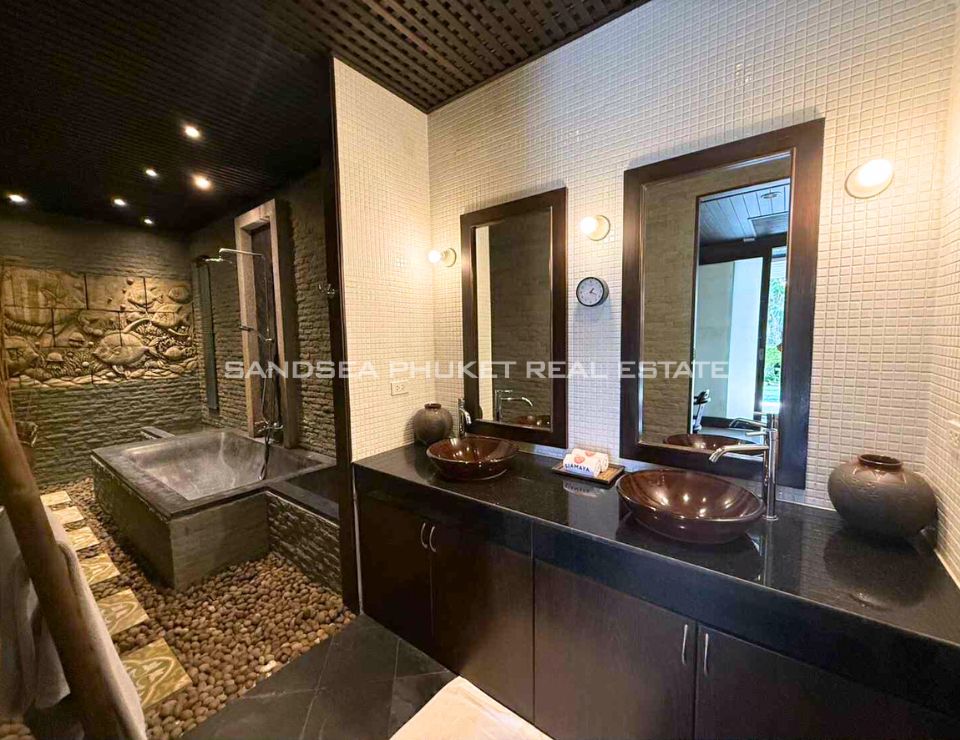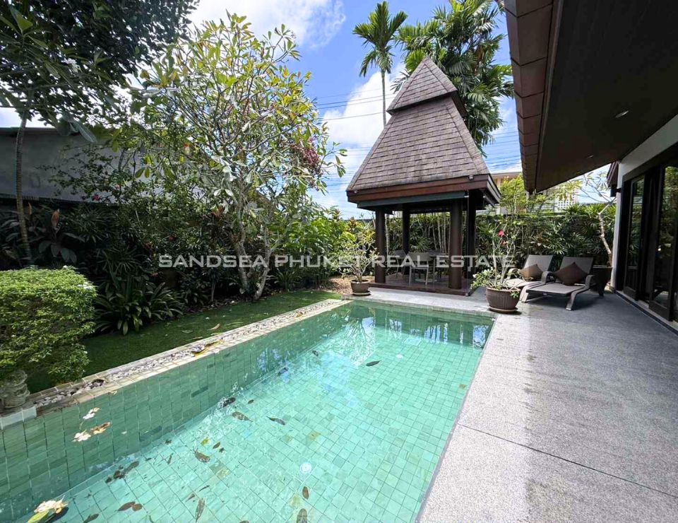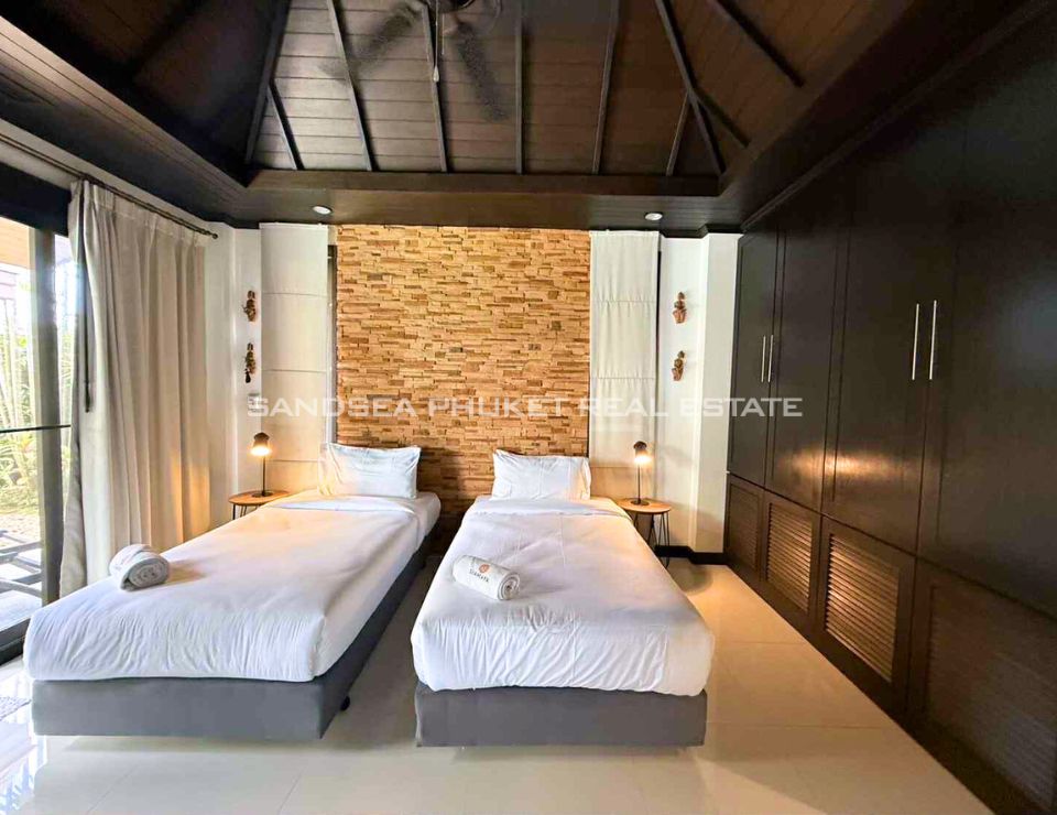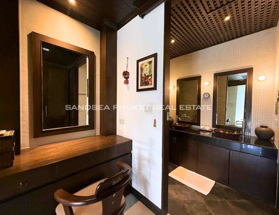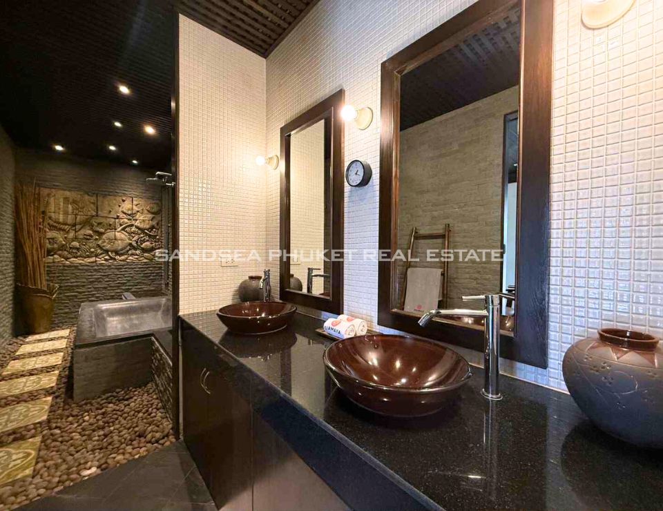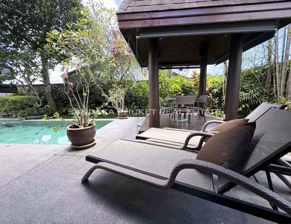 Located on the sunset west coast of Phuket, 10 minutes from pristine Bang Tao Bay and famous Surin Beach. A confidential luxury estate of Thai Bali style with tropical garden in a quiet area. Enjoy a no stress vacation in a 24h secured resort with residential hotel type services.