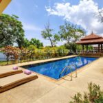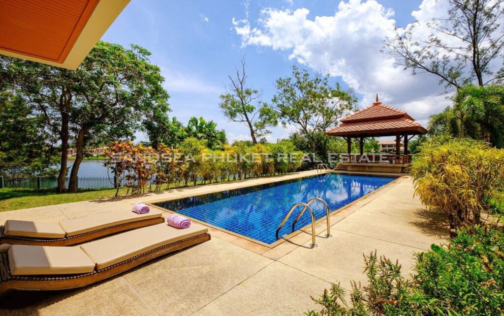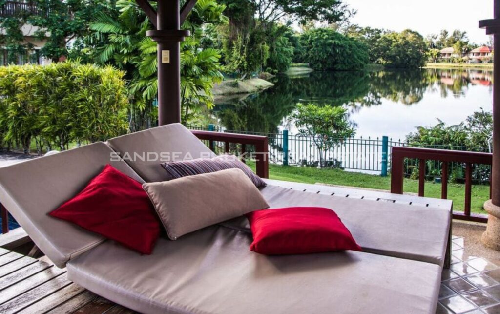 The villa is designed in Thai architectural styles and mainly emphasizes comfort by decorating with fine woodwork. The house interior offers a high ceiling and a large door to let the natural breeze flow freely. The villa is fully furnished. Although the interior is beautiful, you’ll have to spend most of your precious time outdoors because the villa is well-designed. There is a large swimming pool, jacuzzi, and loungers on the terrace, allowing you to enjoy the pool and lake views at the back of the house.