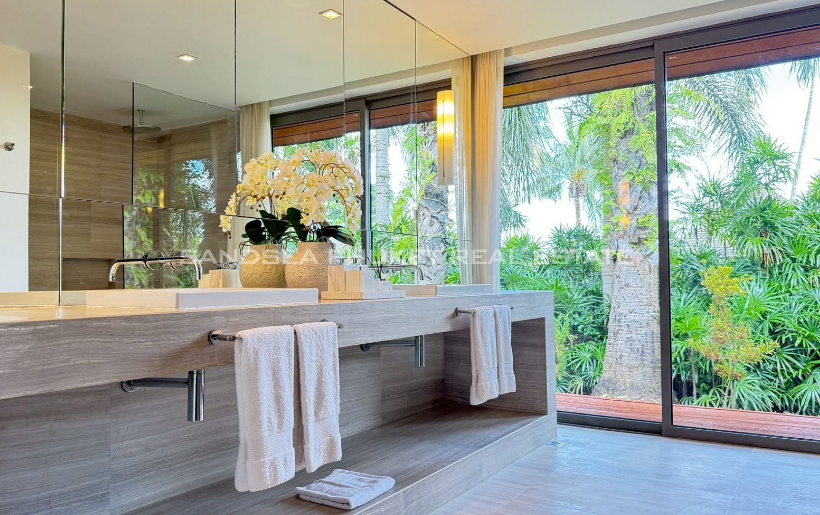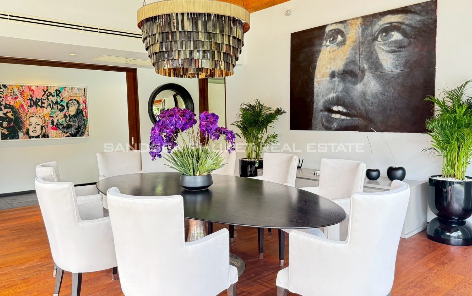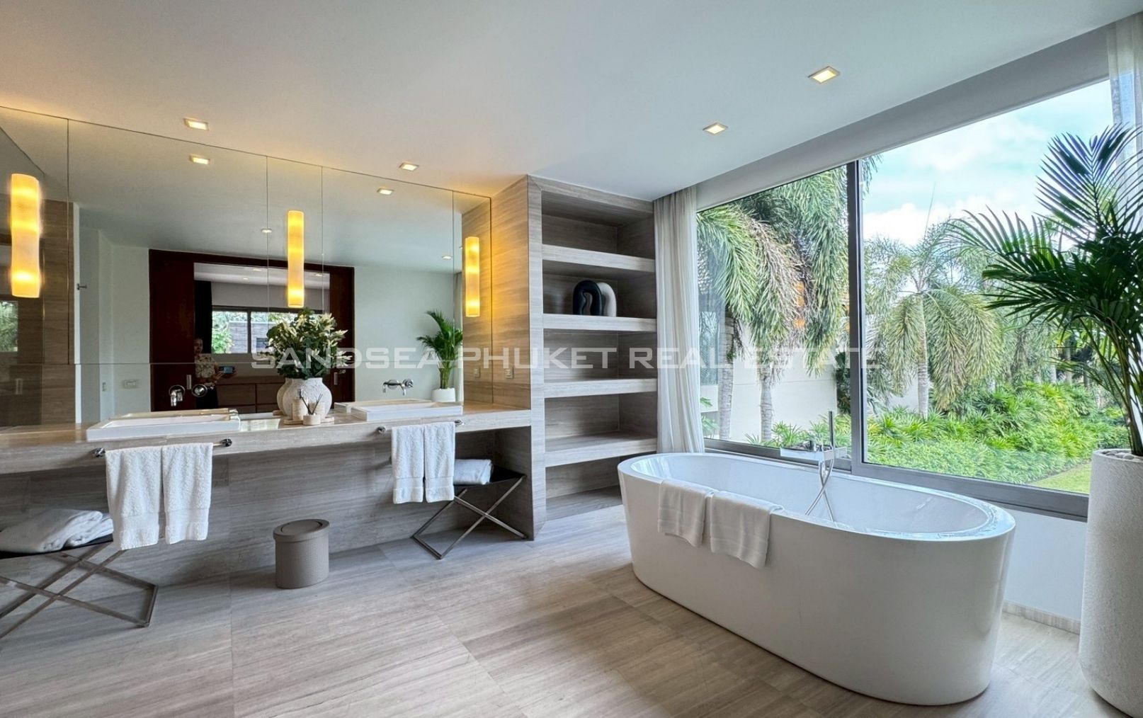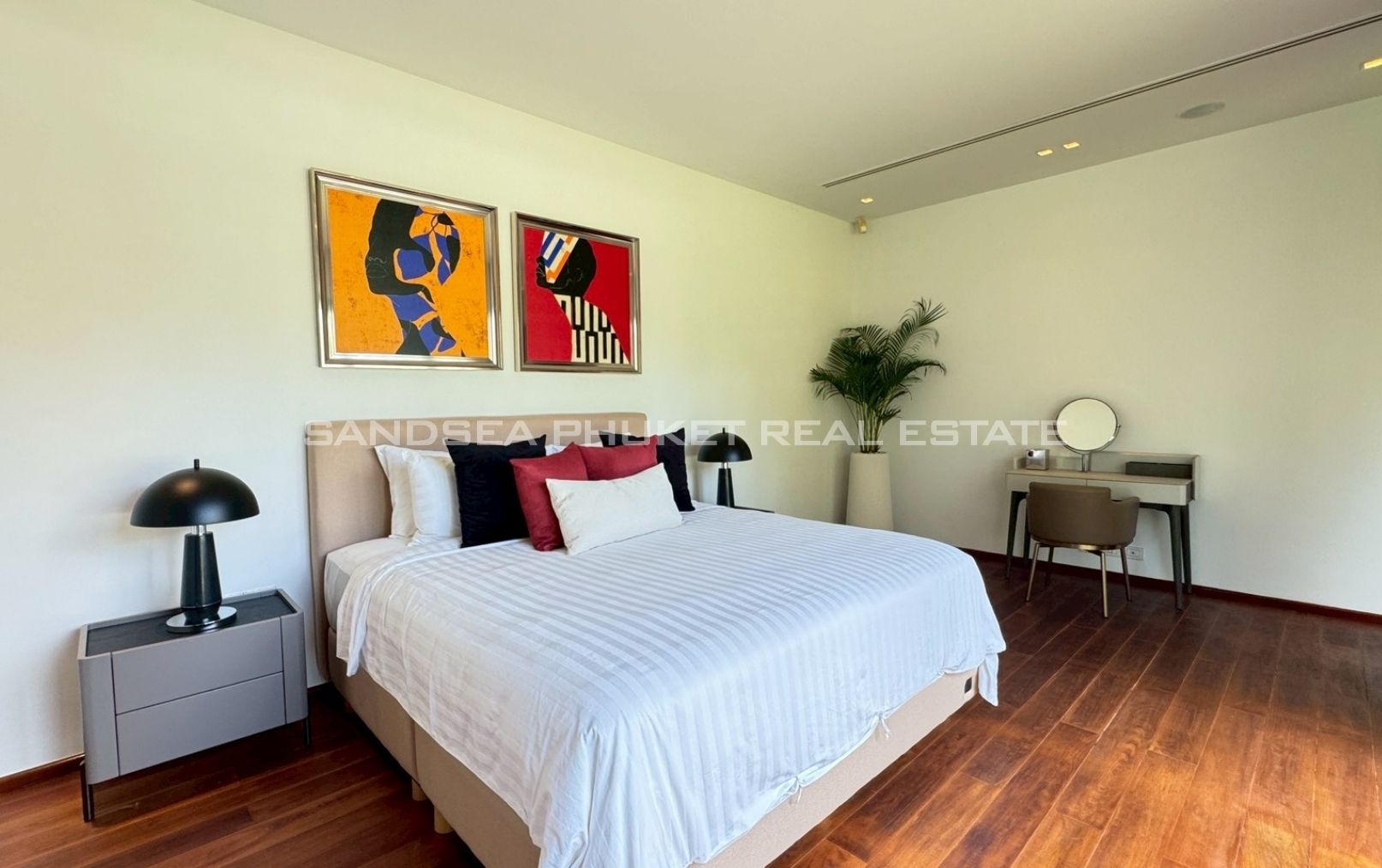 An oasis of peace, a place to live life at it’s best. A 1,900 meter, 4/5 bedroom Villa, in a 2000 meter garden, designed around a 24 meter long Pool at the hart of the villa and garden. You will enjoy beautiful days and nights surrounded by a tropical garden in full privacy. The biggest gardens on this side, the most entertainment offering and beach rich side, of the island. 8 minutes from the beautiful beaches of Bang Tao and Surin, the first, peaceful and endless, the second, buzzing with entertainment. Beach clubs (Nicky Beach, Xana, Bliss, Catch), bars, restaurants, island shopping. Its all within a 5 to 15 minutes radius. The best location to be on the island if you want to get a taste of the better side of Phuket island life, while staying in an oasis of peace and luxury enjoying the garden, pool and grand living spaces you reside in.