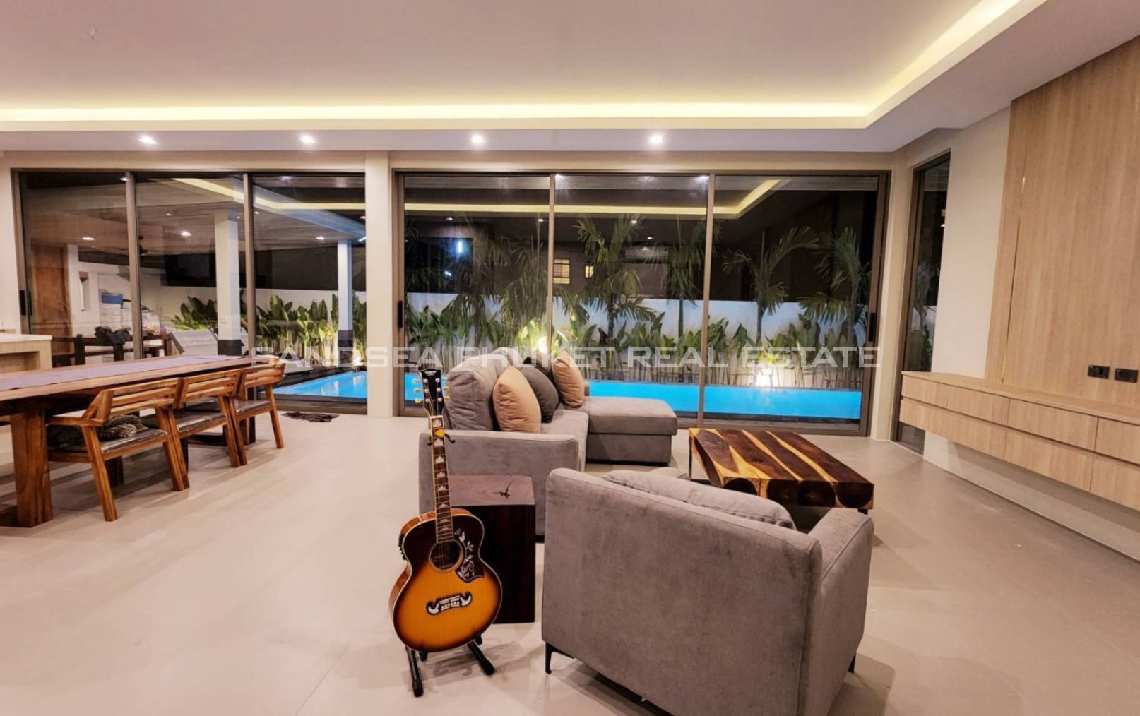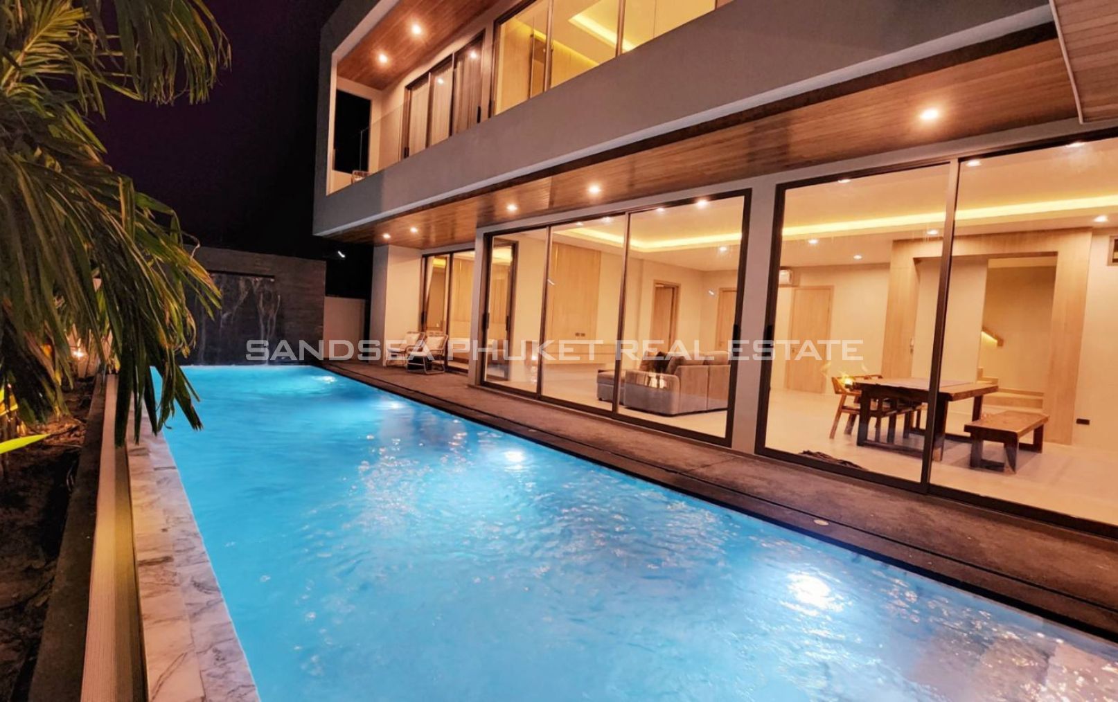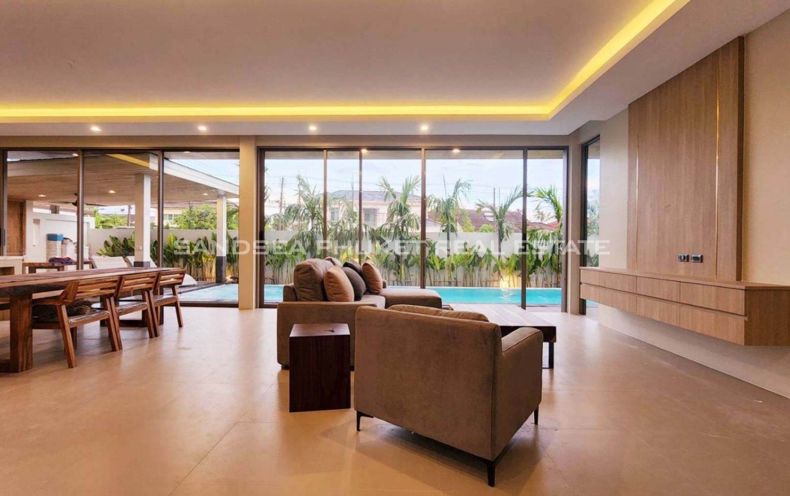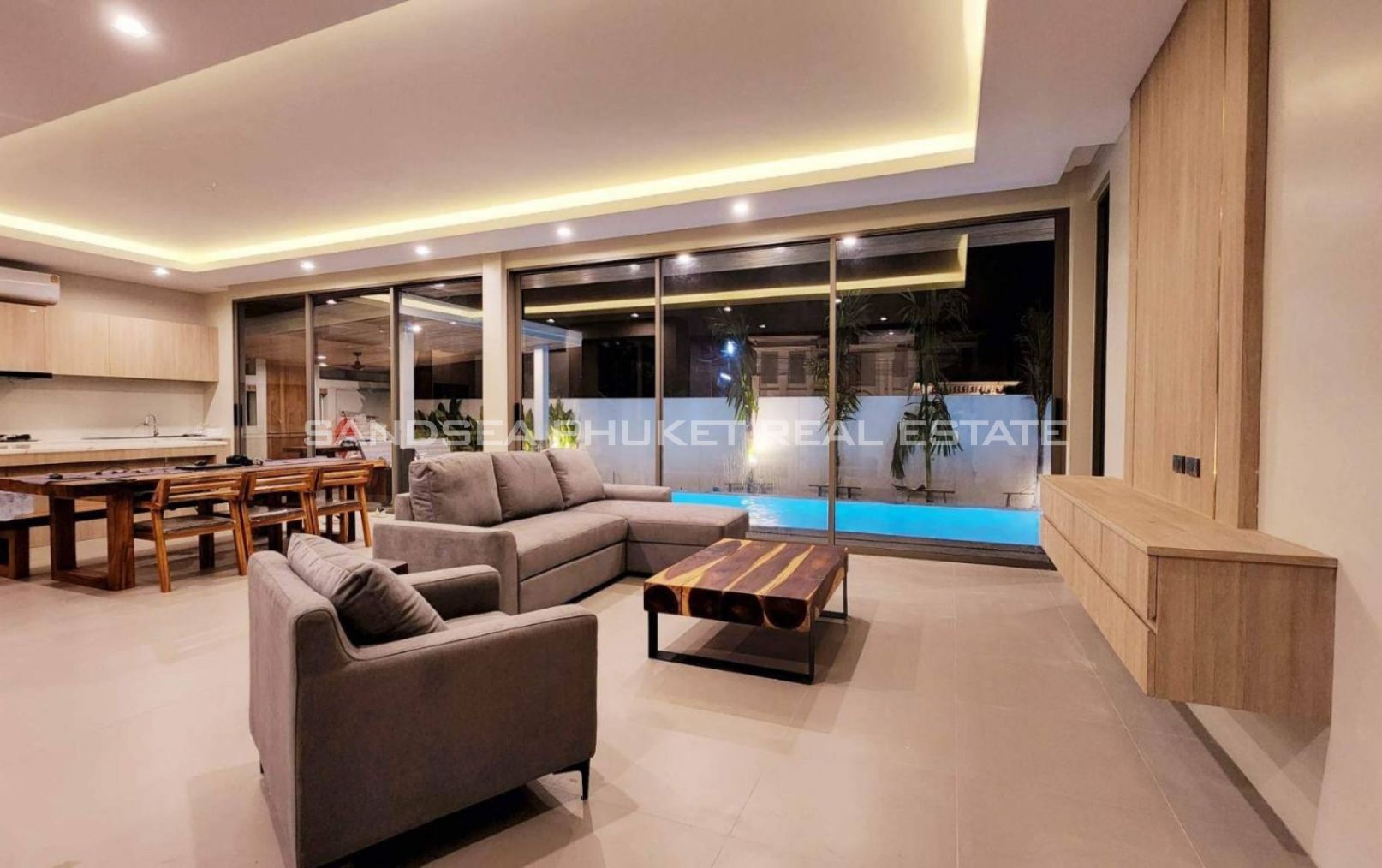 Nestled in the heart of Phuket, this pool villa is a luxurious property that boasts a beautifully designed villa with a very functional and spacious layout. Living & Dining The expansive and open-plan layout for the living and dining area features floor-to-ceiling glass windows framing a view of the terrace and pool. The kitchen has ample space with a long counter. Outdoor Dining Alongside the pool length. The electricity is directly connected to the government network. And there are no common-fee charges. The villa comes with a minimal color tone for a modern style. All bedrooms have a big bed and sofa.