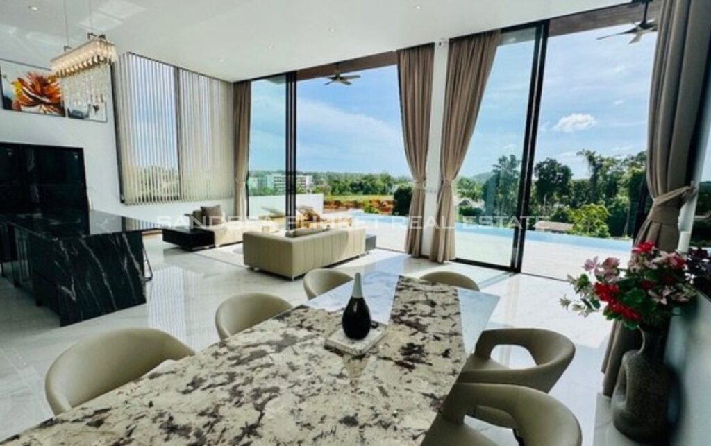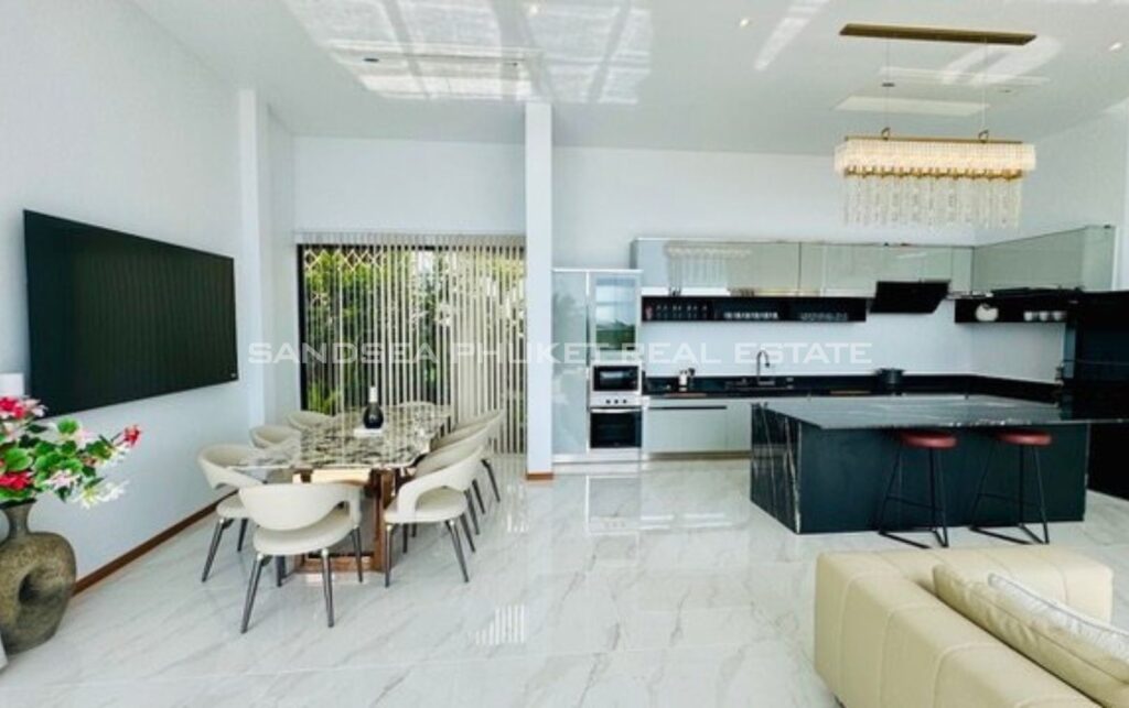 Gorgeous modern private pool villa. The villa has a covered car park for 4 cars. With the big living space combined with dining and kitchen area, imagine smelling a delicious meal your love is cooking. At the same time, you enjoy some television show, or watching the sunset over your infinite private pool on the terrace. All the bedroom has a beautiful view and all have ensuite bathrooms. Start your new journey in Phuket by resting in this heaven.