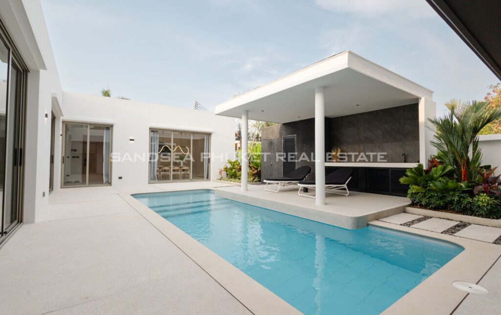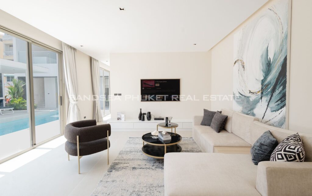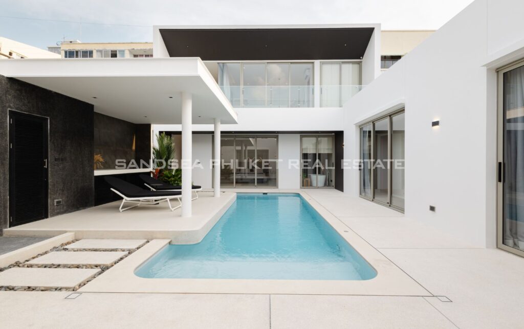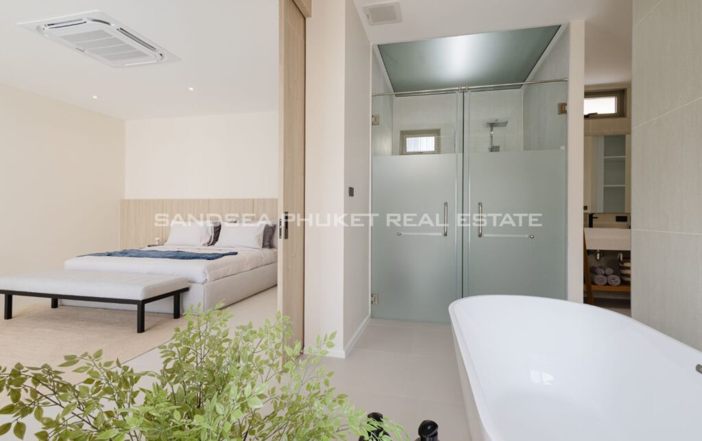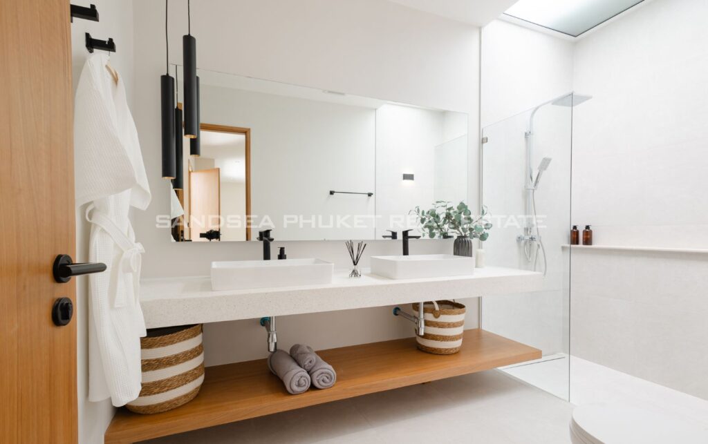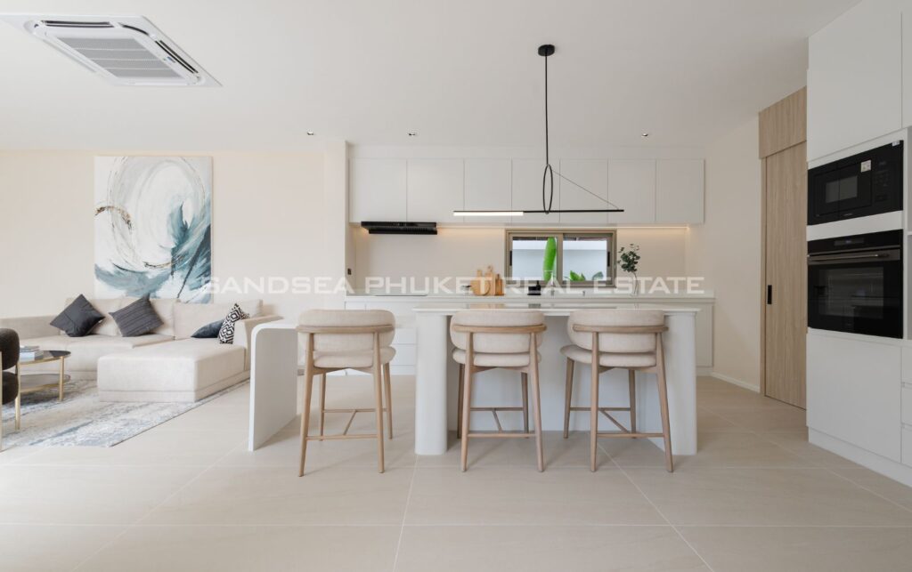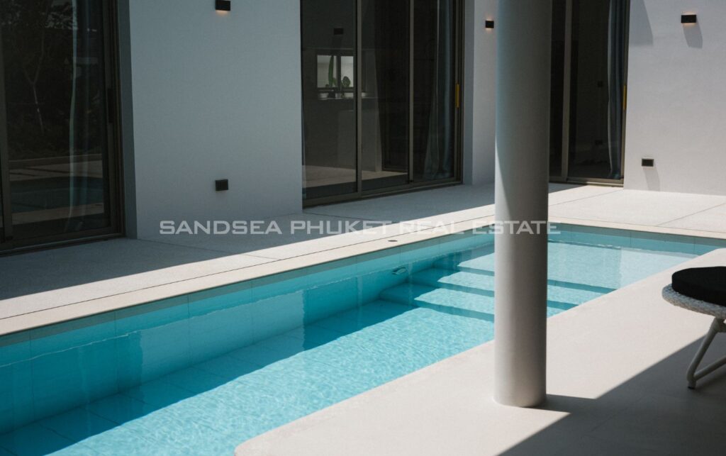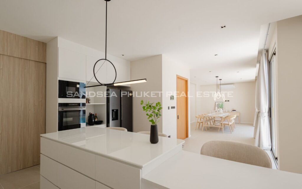 A Haven of Relaxation, this paradise offers a collection of stand-alone villas designed to provide the ultimate relaxation experience. These two-story villas are situated on spacious 428 sq.m land plots with 416 sq.m of meticulously constructed living space. The villa boasts a roomy living area, a dedicated parking space, a well-appointed kitchen, an elegant dining area, and a comfortable lounge. What’s truly captivating is that most of the primary living areas open up to offer a breathtaking view of the pool, creating an atmosphere of serenity and tranquility. The high ceilings within the living and dining spaces not only lend an aura of spaciousness but also bestow an invigorating freshness to the interiors. This feature, combined with the careful design of each villa, ensures that residents experience an unmatchable sense of luxury and comfort. The residents find themselves in a place where modern design seamlessly melds with the natural beauty of the Andaman Sea, creating an idyllic haven in the heart of Phuket.