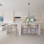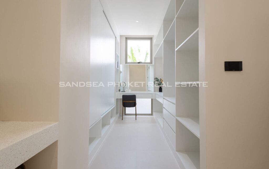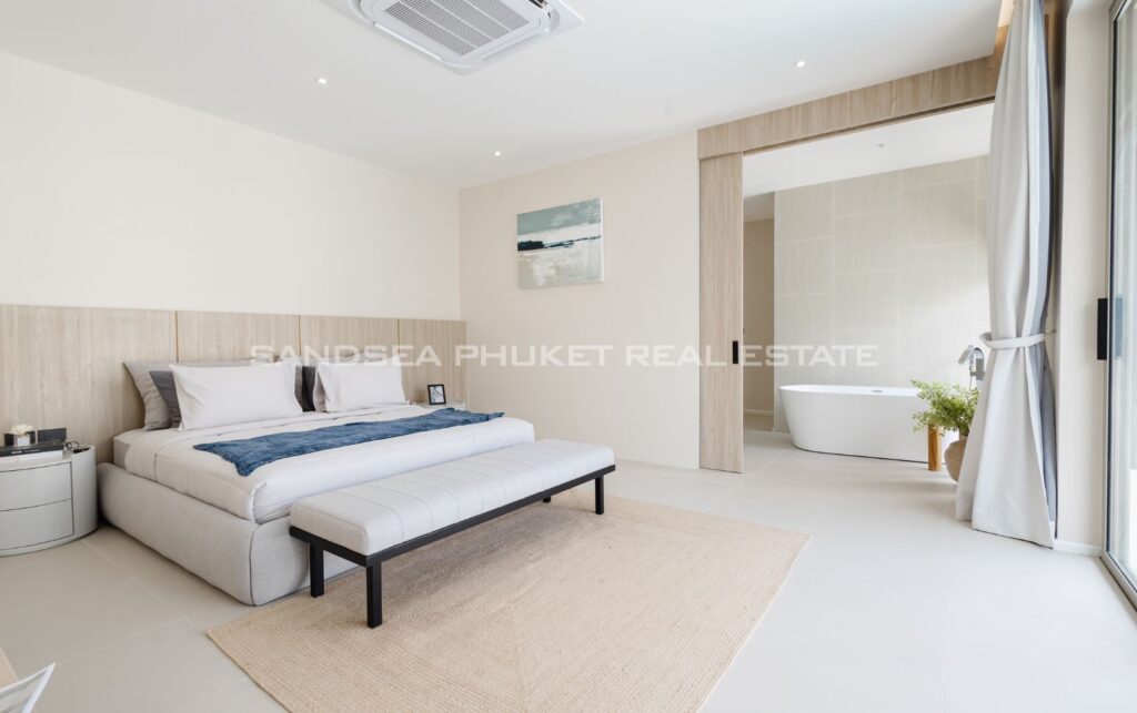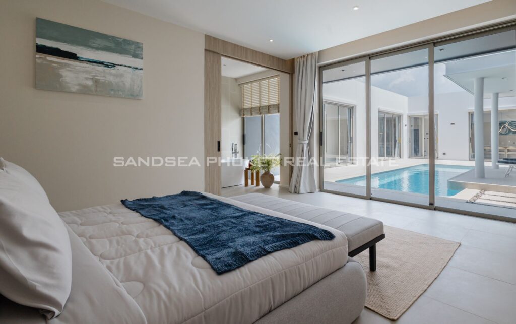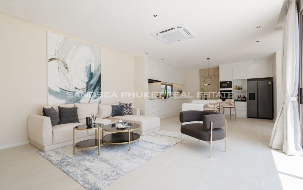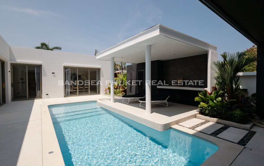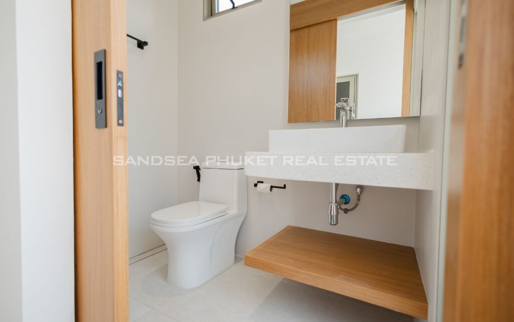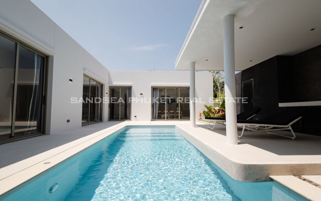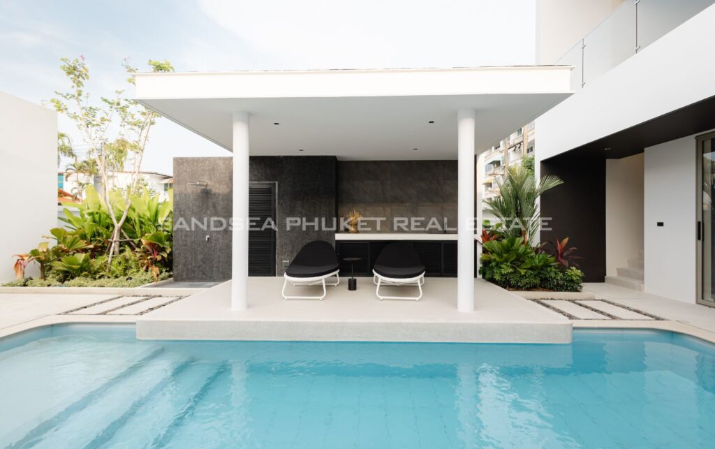 A Haven of Relaxation, this paradise offers a collection of stand-alone villas designed to provide the ultimate relaxation experience. These two-story villas are situated on spacious 428 sq.m land plots with 416 sq.m of meticulously constructed living space. The villa boasts a roomy living area, a dedicated parking space, a well-appointed kitchen, an elegant dining area, and a comfortable lounge. What’s truly captivating is that most of the primary living areas open up to offer a breathtaking view of the pool, creating an atmosphere of serenity and tranquility. The high ceilings within the living and dining spaces not only lend an aura of spaciousness but also bestow an invigorating freshness to the interiors. This feature, combined with the careful design of each villa, ensures that residents experience an unmatchable sense of luxury and comfort. The residents find themselves in a place where modern design seamlessly melds with the natural beauty of the Andaman Sea, creating an idyllic haven in the heart of Phuket.