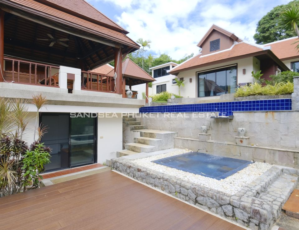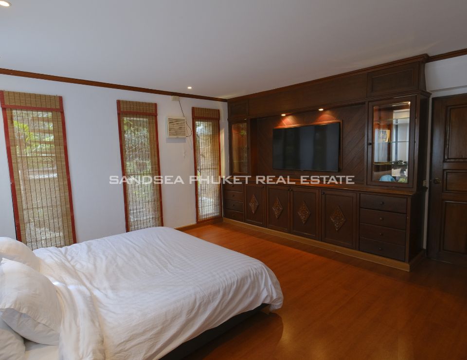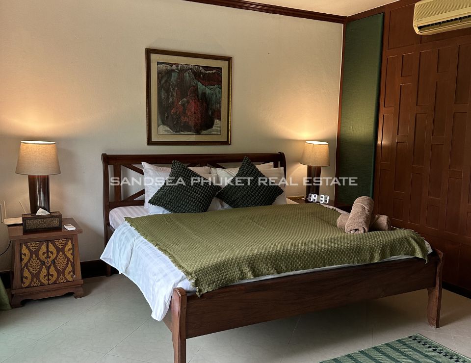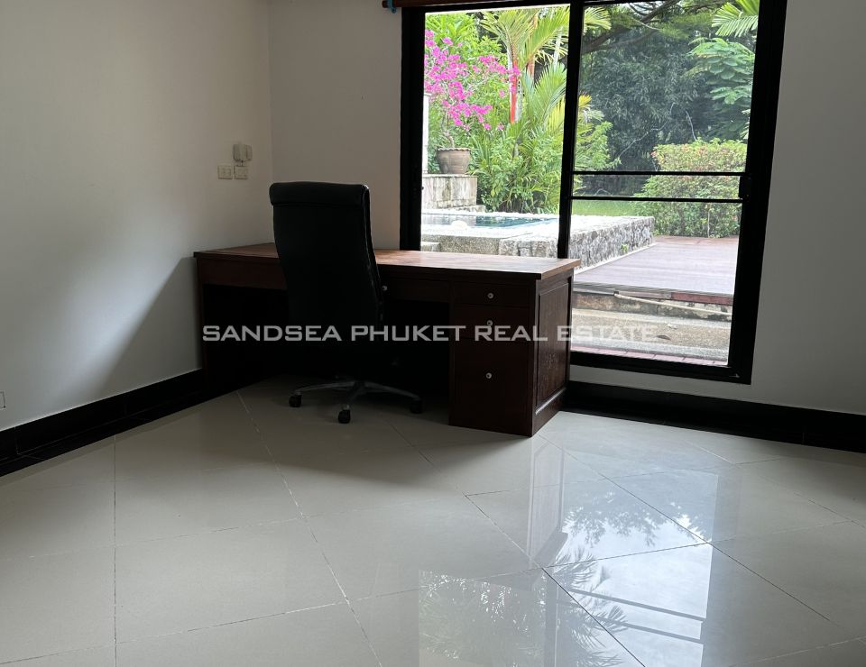 Surrounded by lush tropical landscaping, the villa features a private swimming pool with jacuzzi, a beautifully maintained garden adorned with mature palm trees, and a shaded gazebo ideal for relaxation or entertaining guests. Each of the five bedrooms is en-suite, offering comfort and privacy for family members and visitors alike. The villa also provides private parking for two cars and is thoughtfully designed to maximize natural light, ventilation, and indoor–outdoor harmony—perfect for Phuket’s tropical lifestyle.