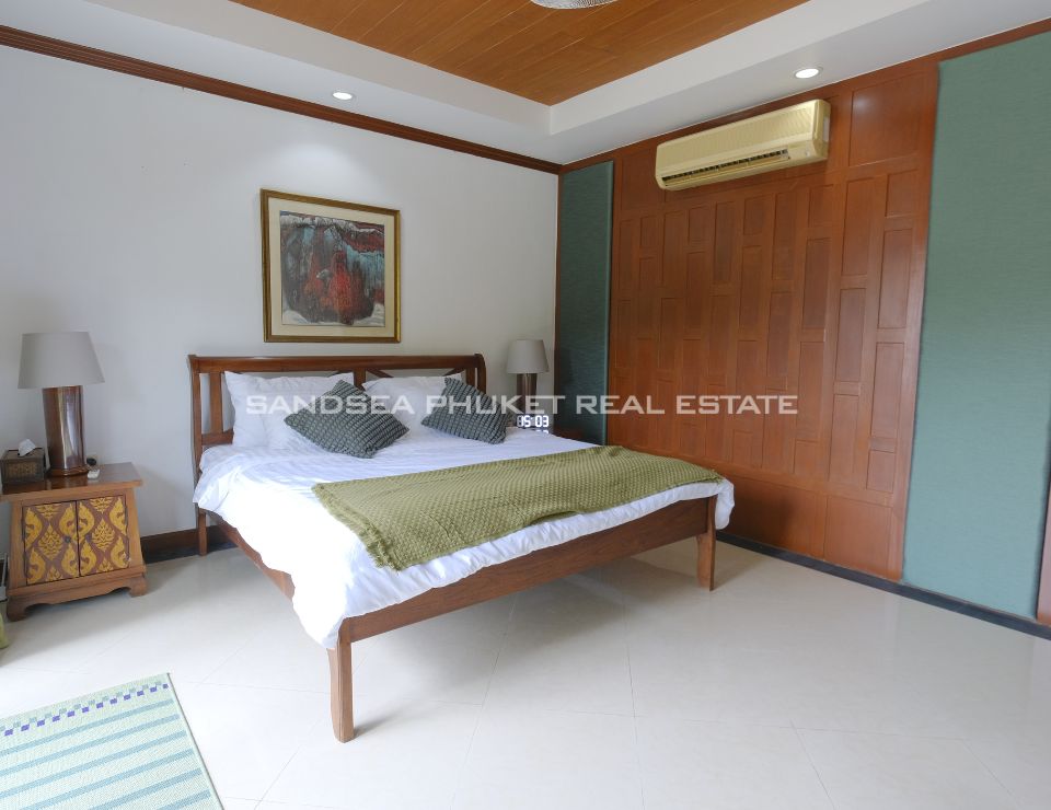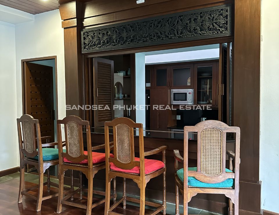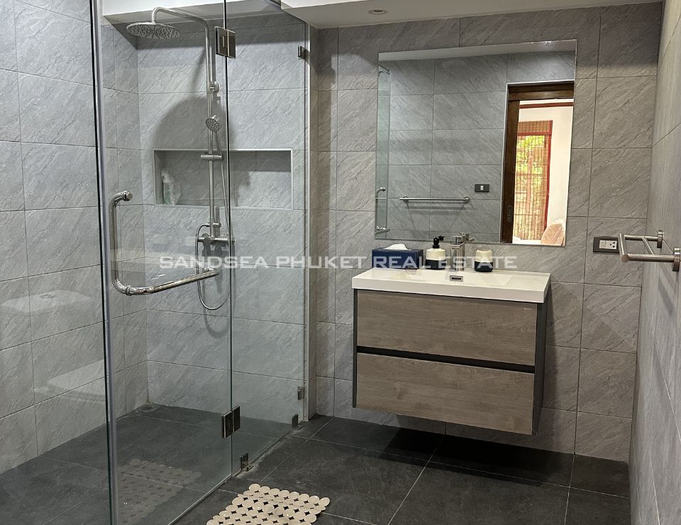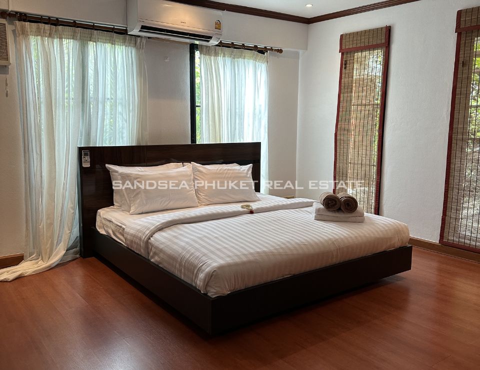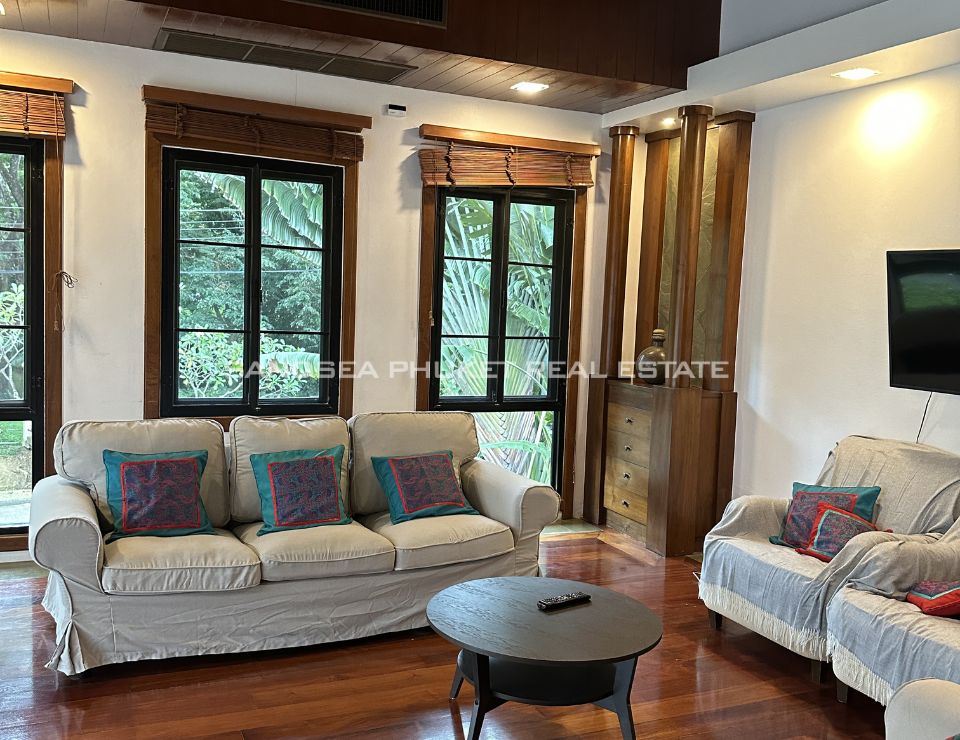 Surrounded by lush tropical landscaping, the villa features a private swimming pool with jacuzzi, a beautifully maintained garden adorned with mature palm trees, and a shaded gazebo ideal for relaxation or entertaining guests. Each of the five bedrooms is en-suite, offering comfort and privacy for family members and visitors alike. The villa also provides private parking for two cars and is thoughtfully designed to maximize natural light, ventilation, and indoor–outdoor harmony—perfect for Phuket’s tropical lifestyle.