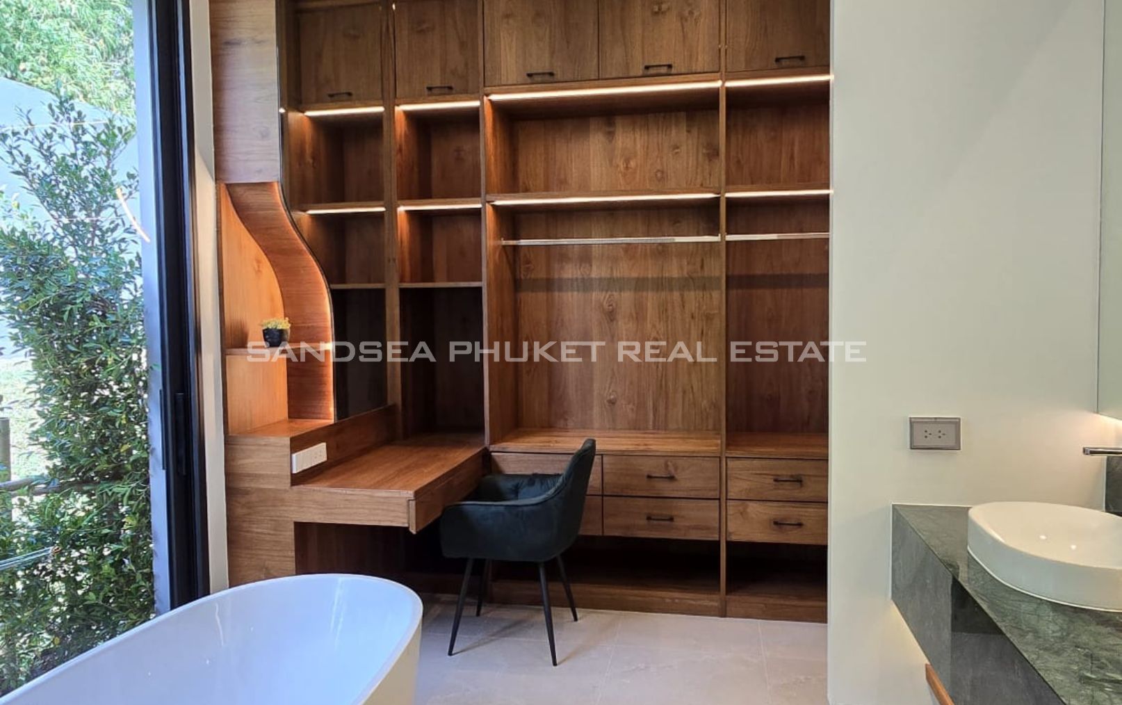 Natural colors and patterns of stones add beautiful aesthetics to the villa. The volcanic tiles in the pool lend a tropical feel to your relaxation spot. It’s porous texture makes the temperature of the pool remains stable despite the hot weather. Vaulted ceilings combined with natural hardwood beams enhance the tropical looks and natural features.
