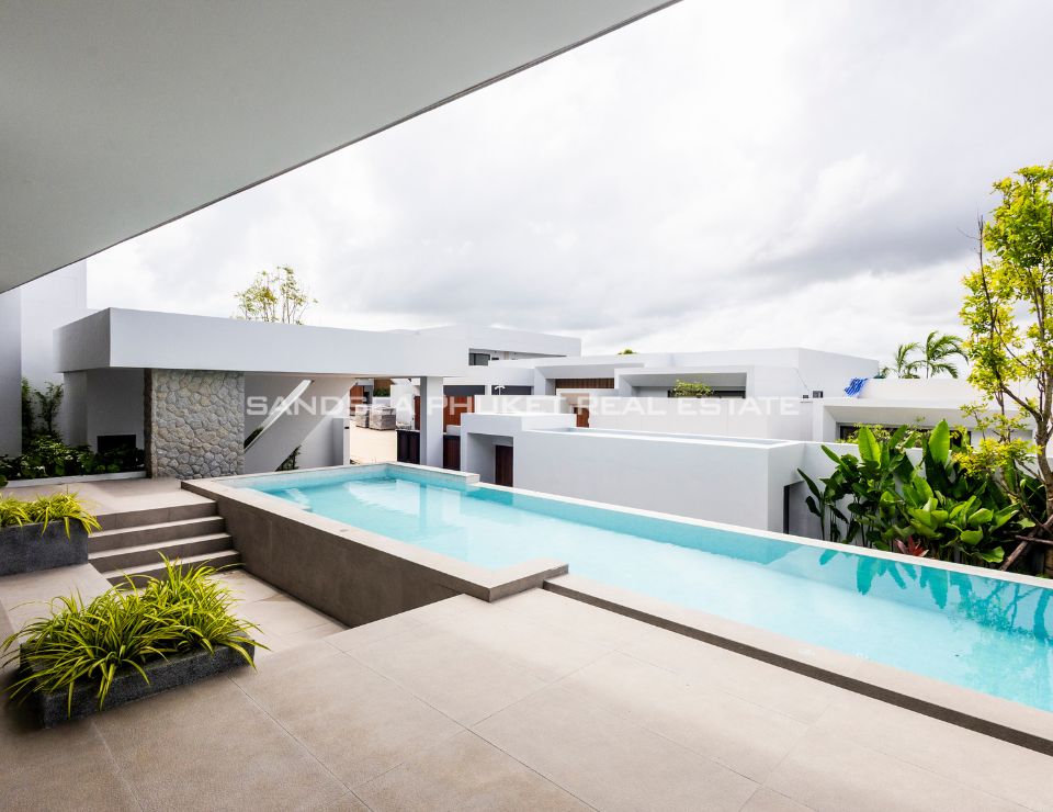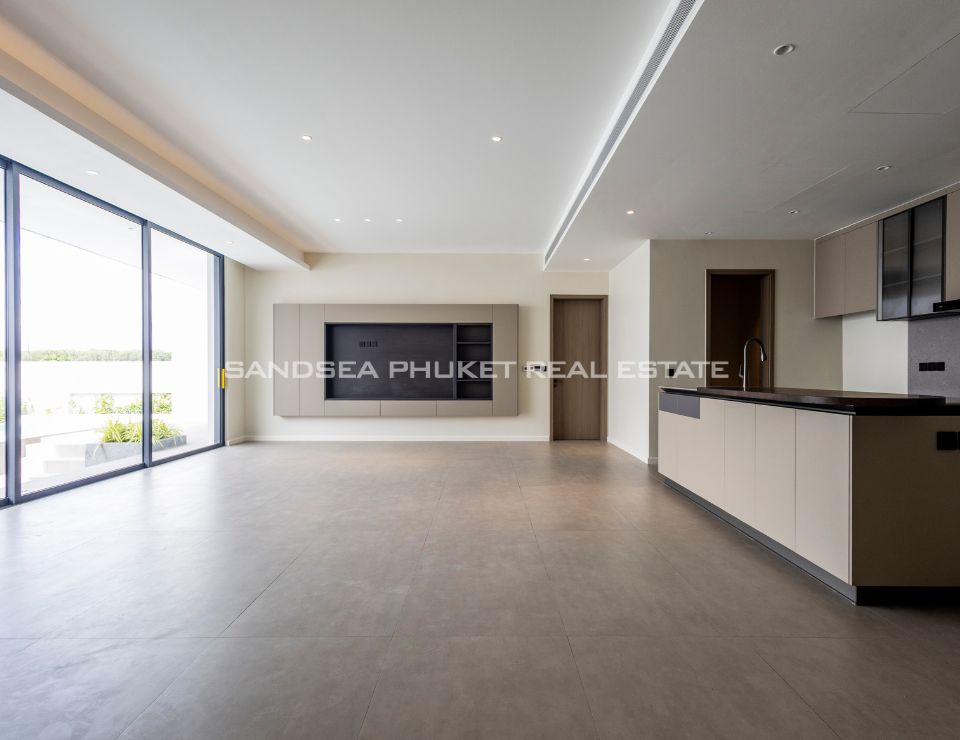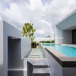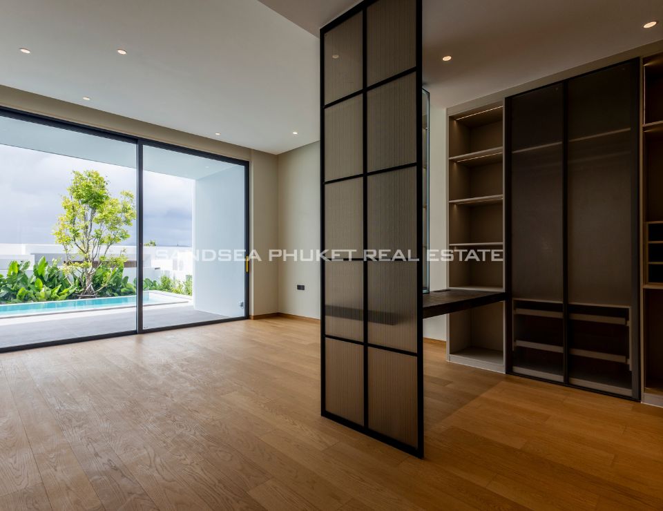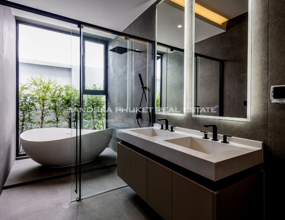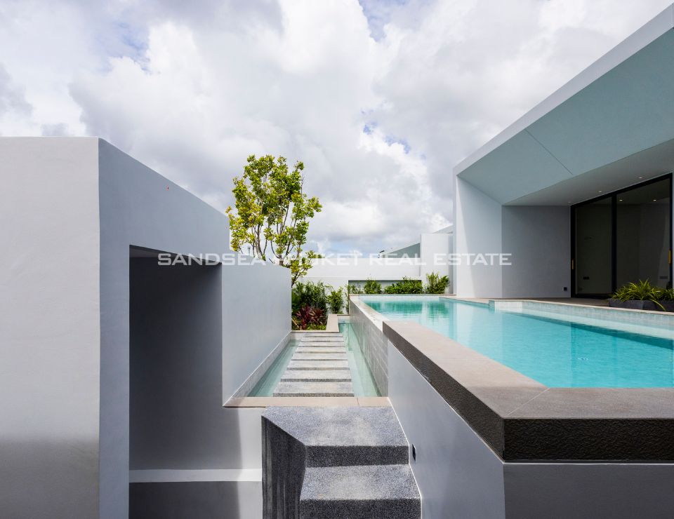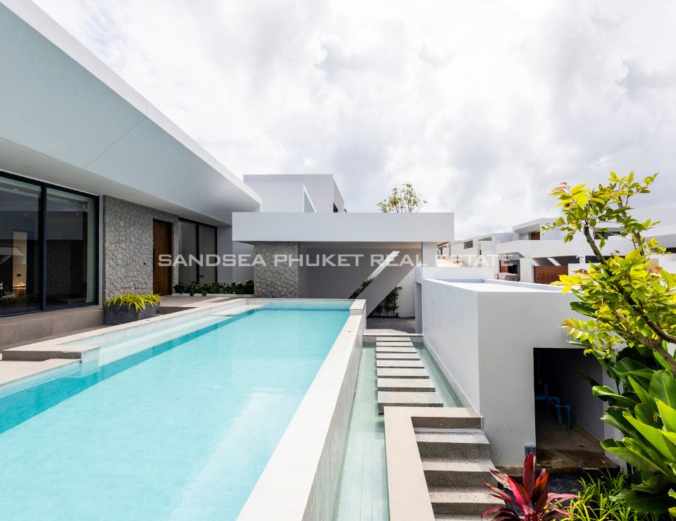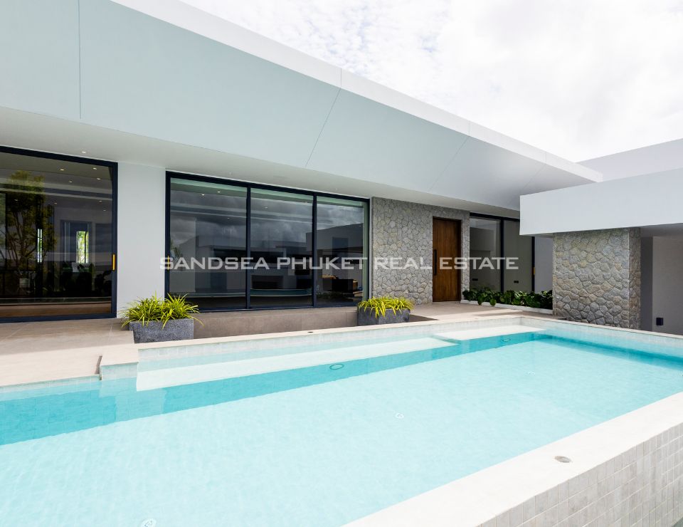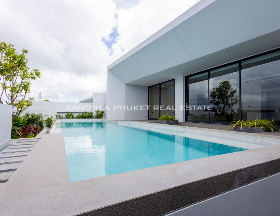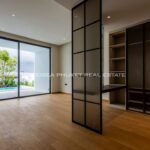 The heart of the villa features a stunning lap pool that runs parallel to the main living areas, creating a serene aquatic backdrop visible from nearly every room. Inside, the open-plan layout emphasizes space and light, highlighting a sleek, high-end kitchen with integrated cabinetry and a minimalist aesthetic. The master suite offers a sanctuary of calm, complete with a designer bathroom featuring a freestanding soaking tub positioned against a private green vista. This is more than just a home; it is a canvas of refined design, waiting for the right owner to bring it to life.