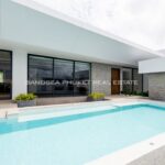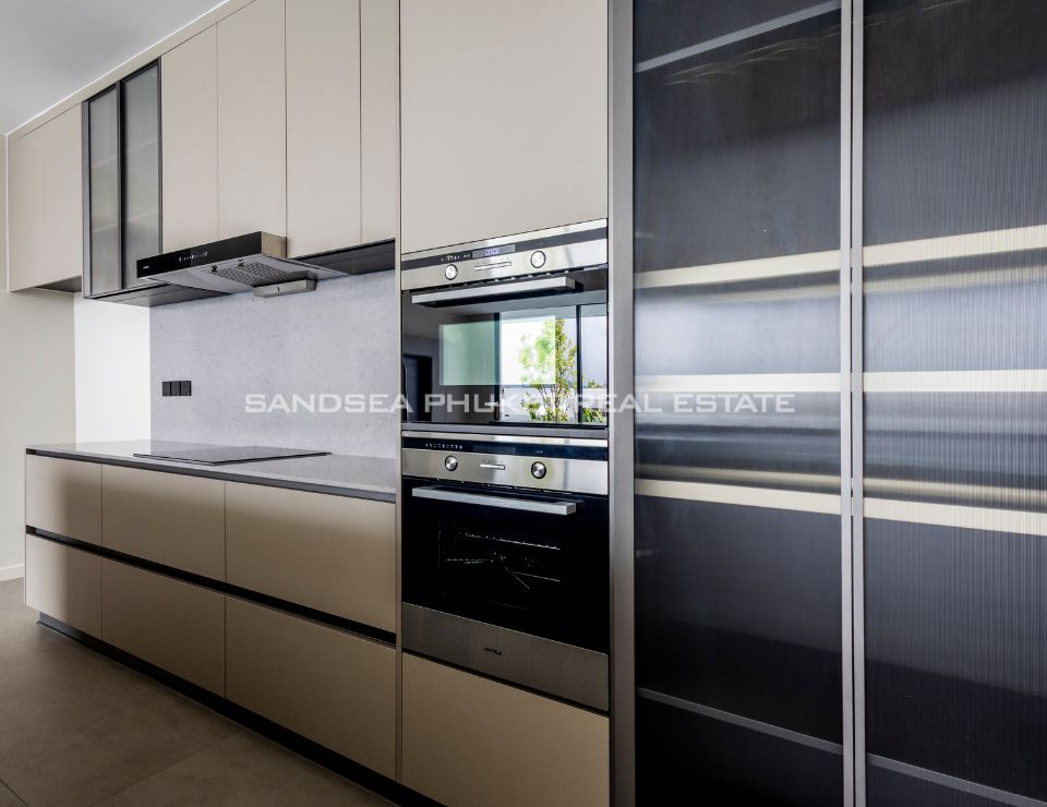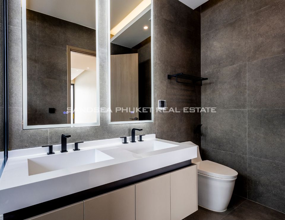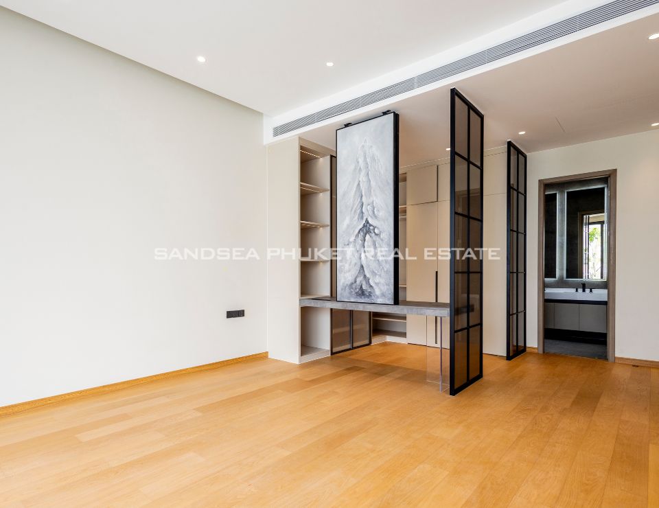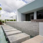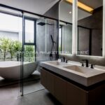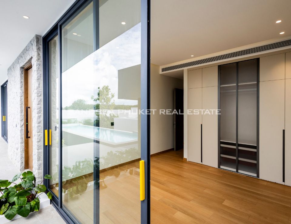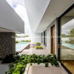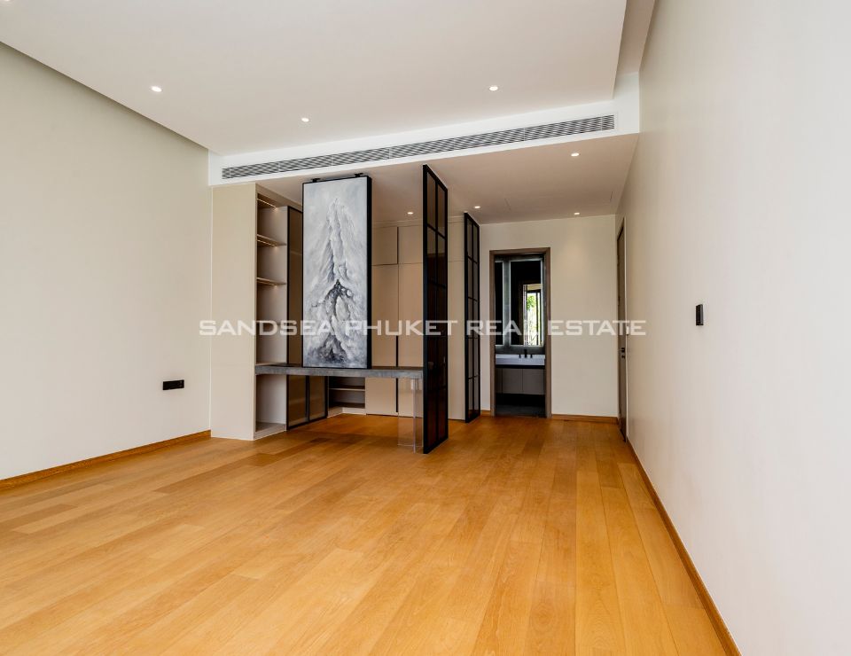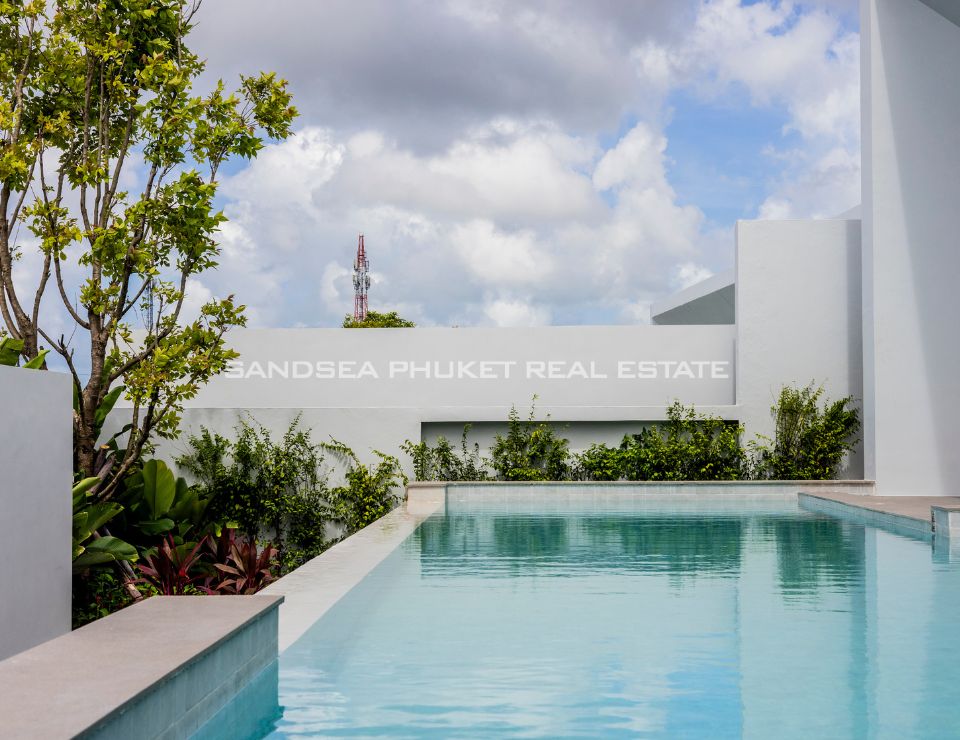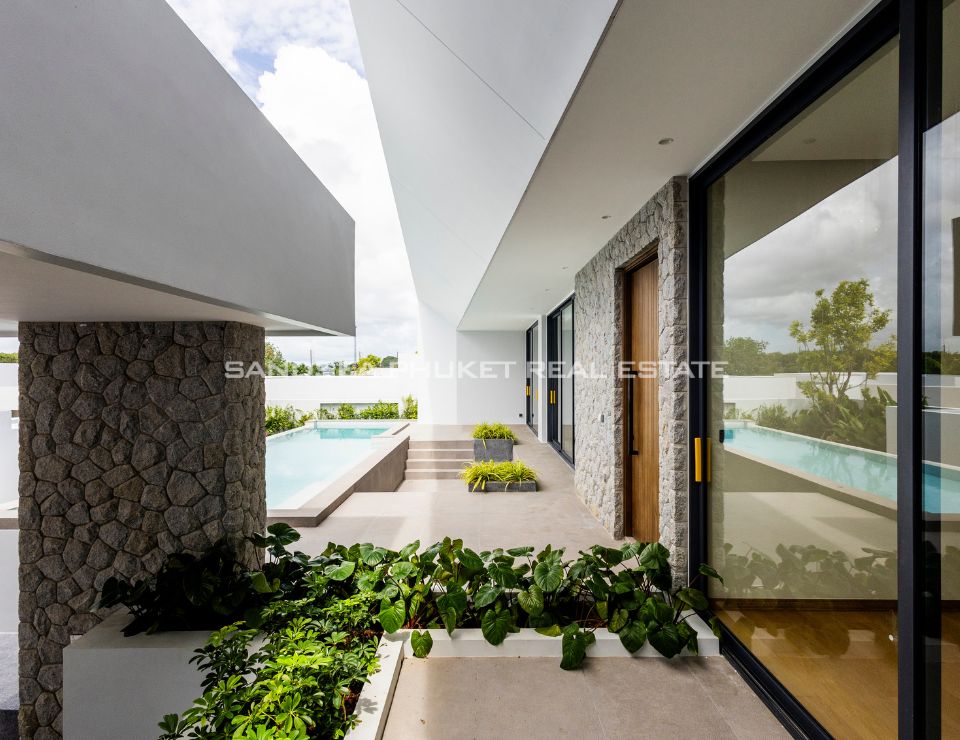 The heart of the villa features a stunning lap pool that runs parallel to the main living areas, creating a serene aquatic backdrop visible from nearly every room. Inside, the open-plan layout emphasizes space and light, highlighting a sleek, high-end kitchen with integrated cabinetry and a minimalist aesthetic. The master suite offers a sanctuary of calm, complete with a designer bathroom featuring a freestanding soaking tub positioned against a private green vista. This is more than just a home; it is a canvas of refined design, waiting for the right owner to bring it to life.
