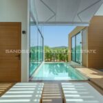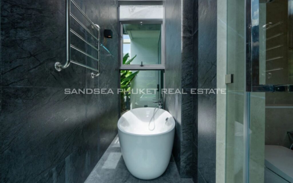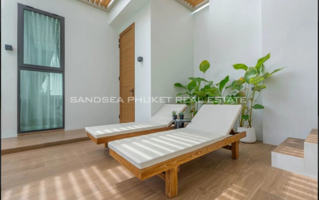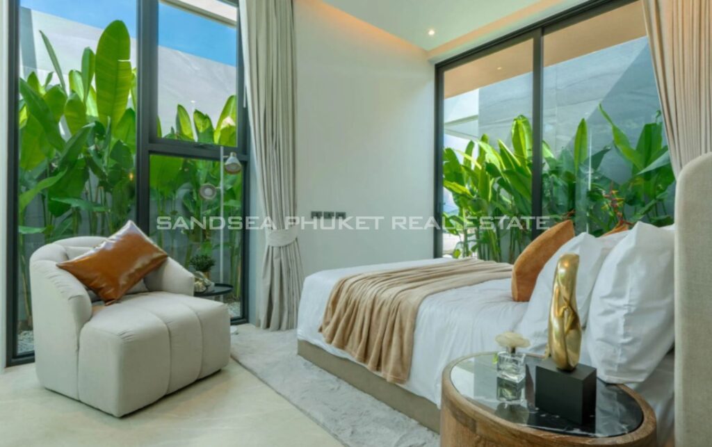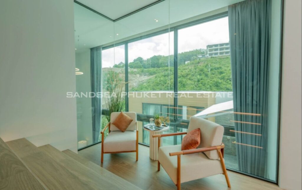 The perfectly blue bay stretches out into the sea, set off by forest and craggy cliffs. relax by the pool deck, letting the Phuket sunshine warm you. The interior is modern, clean, and full of windows drawing you out toward that pool deck and perfect sea view. Premium design materials and decorations that blend seamlessly with nature blend seamlessly into the space and surroundings.