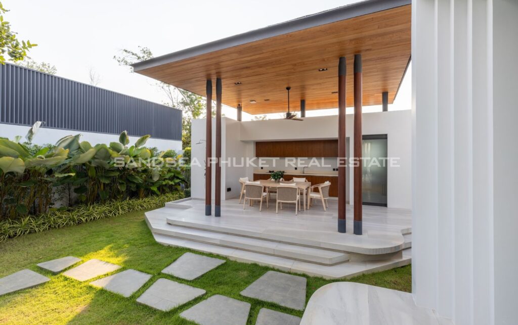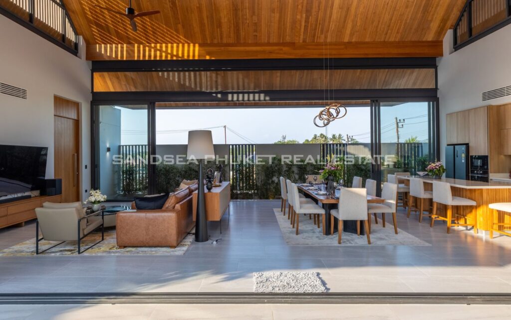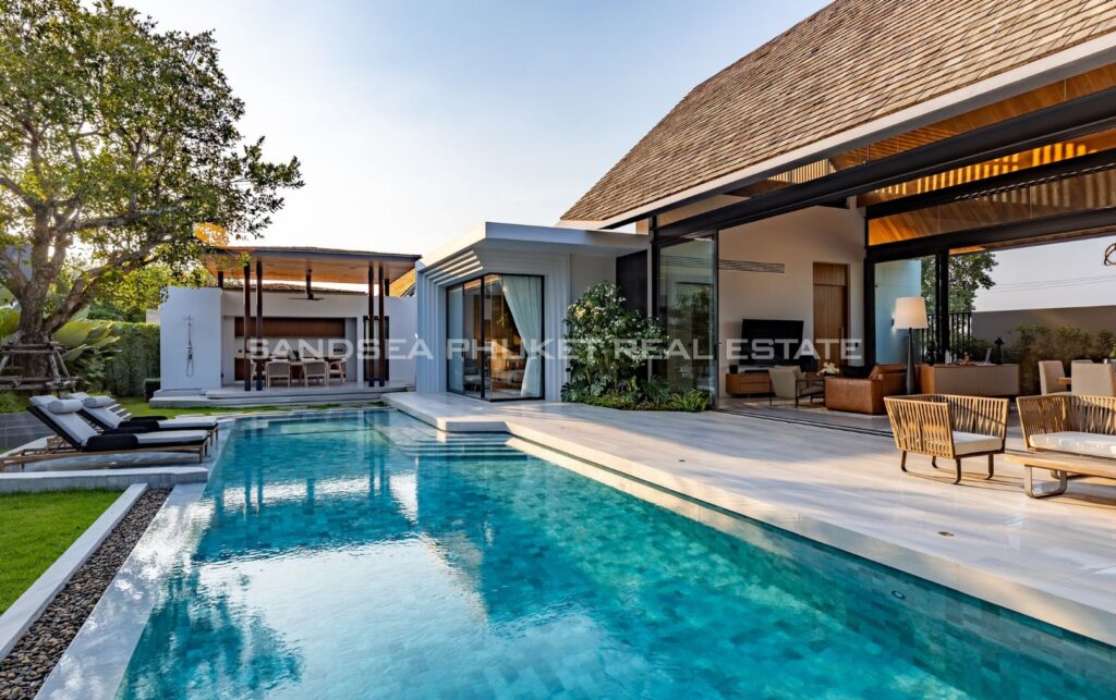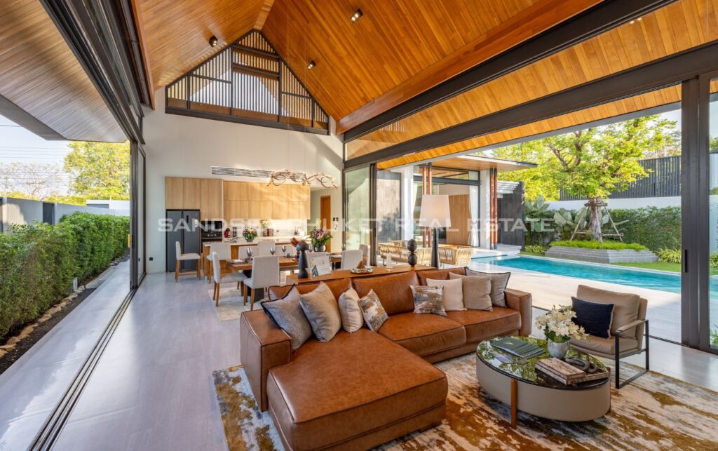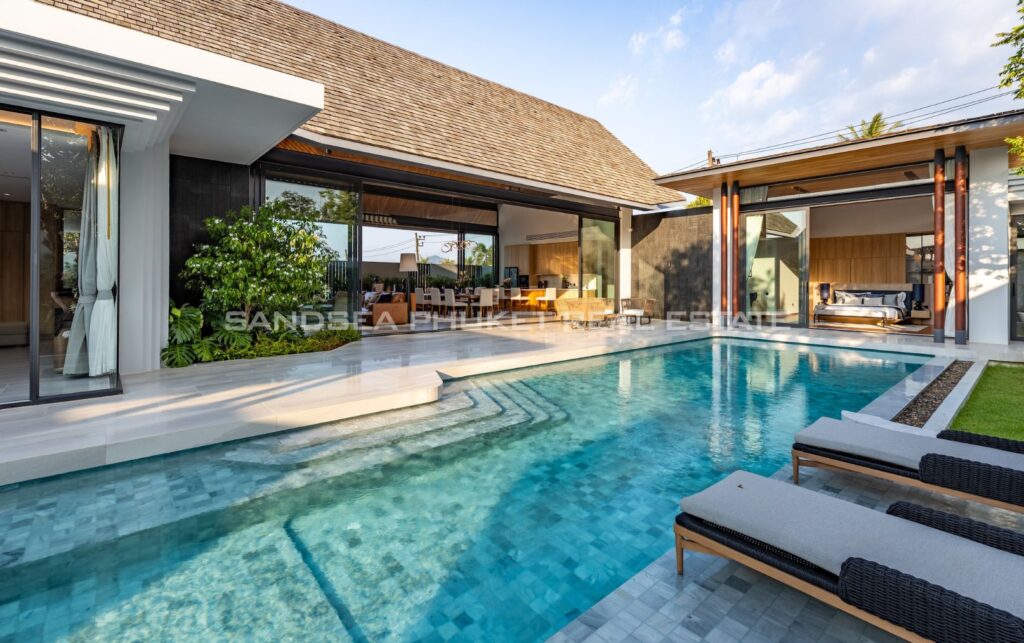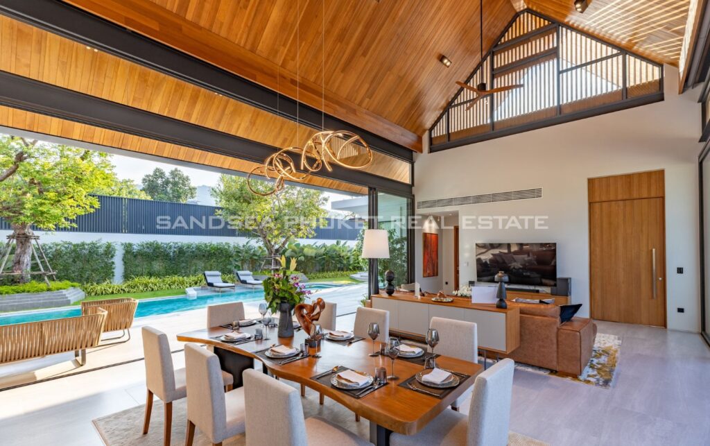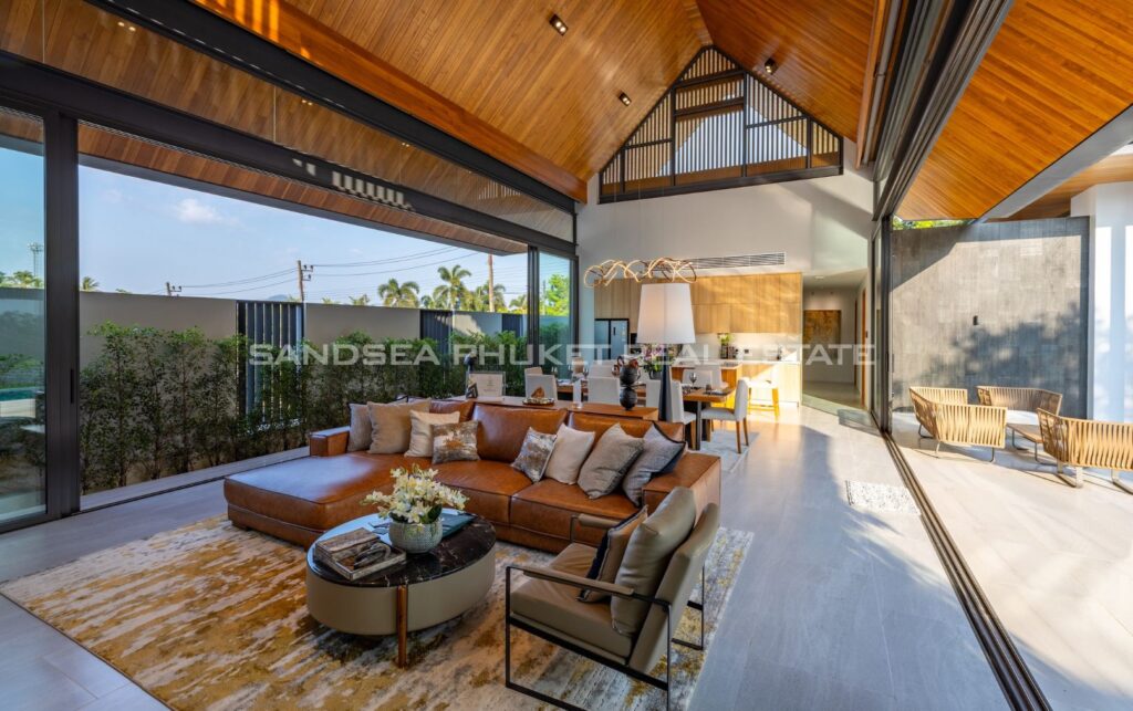 Immerse yourself these villas, where modern design meets traditional Thai elegance. Nestled in the heart of a prime area of Phuket just minutes drive away from renowned Bangtao and Layan beach, these exceptional villas harmoniously merge the old with the new, creating an ambiance that redefines luxury. Their aesthetic reflects the balance of life and spirit, symbolized by the flowing air and abundance of natural light, elevating your living experience to unprecedented heights. The unique villas seamlessly combine a traditional Thai gable roof’s charm with contemporary grace. Each meticulously crafted detail caters to an extraordinary lifestyle while maintaining individual privacy and fostering family connections. The villa inviting living space with 8–meter–high ceiling forms the spectacular backdrop for creating and cherishing unforgettable moments.