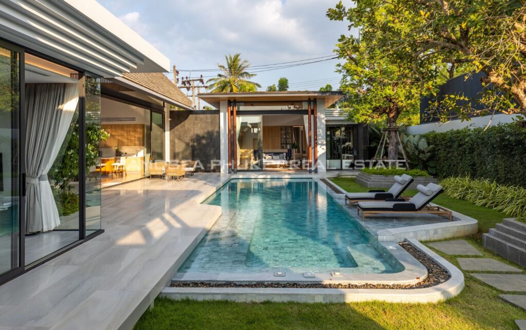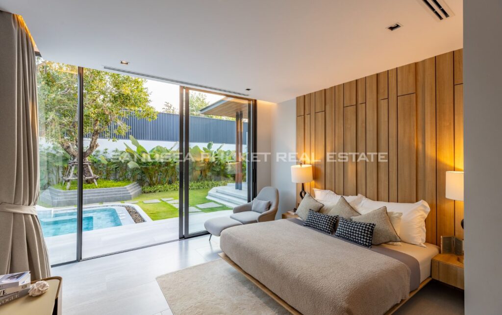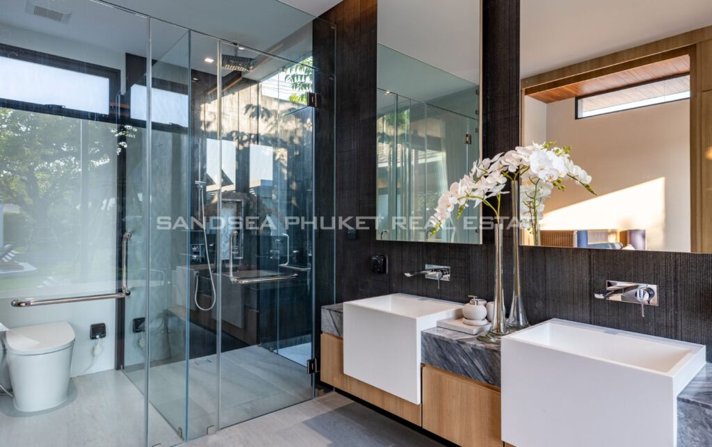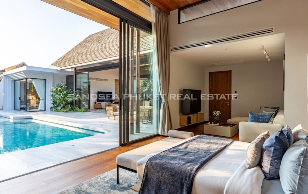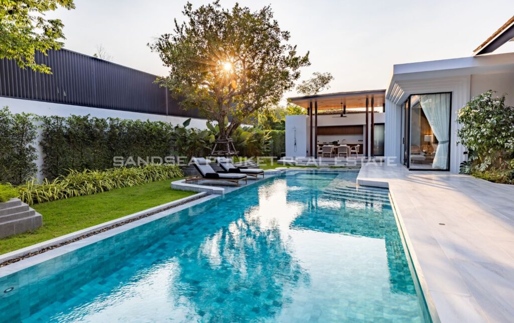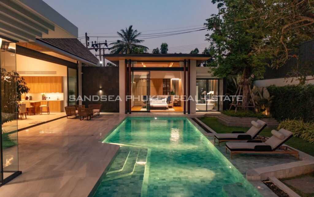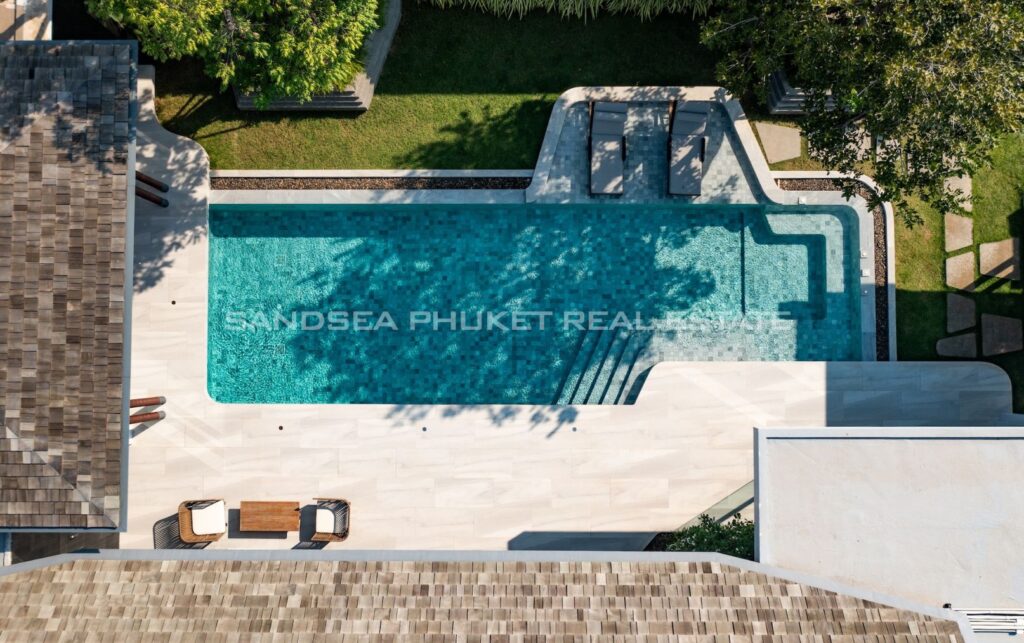 Immerse yourself these villas, where modern design meets traditional Thai elegance. Nestled in the heart of a prime area of Phuket just minutes drive away from renowned Bangtao and Layan beach, these exceptional villas harmoniously merge the old with the new, creating an ambiance that redefines luxury. Their aesthetic reflects the balance of life and spirit, symbolized by the flowing air and abundance of natural light, elevating your living experience to unprecedented heights. The unique villas seamlessly combine a traditional Thai gable roof’s charm with contemporary grace. Each meticulously crafted detail caters to an extraordinary lifestyle while maintaining individual privacy and fostering family connections. The villa inviting living space with 8–meter–high ceiling forms the spectacular backdrop for creating and cherishing unforgettable moments.