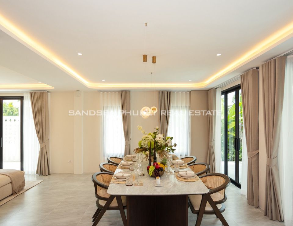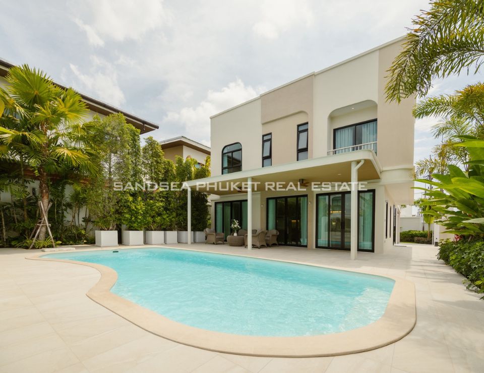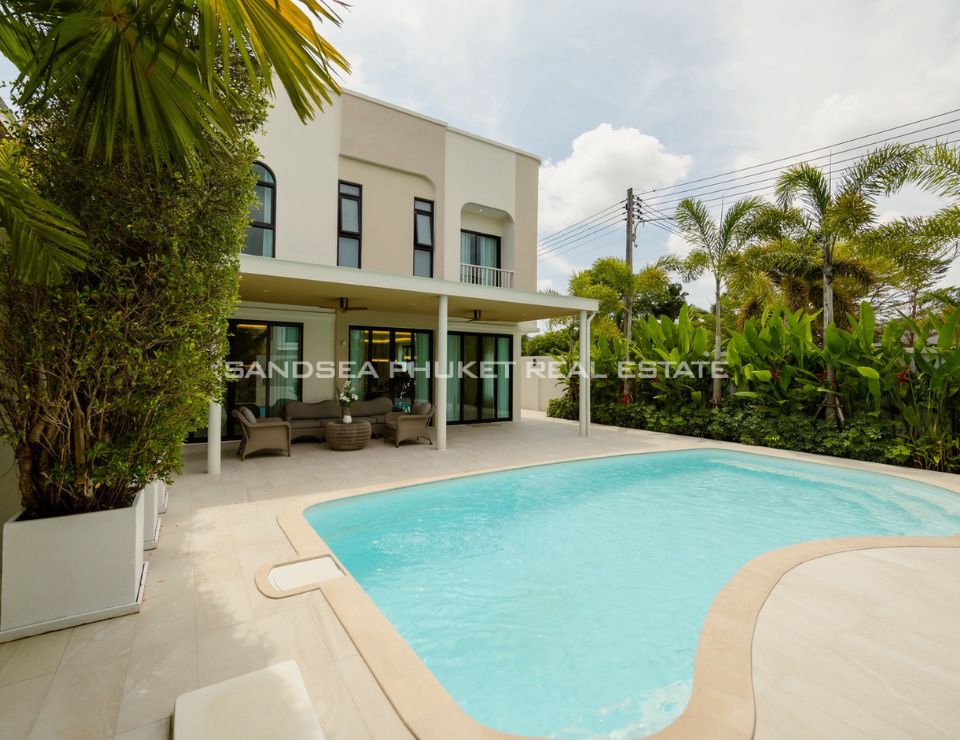 Discover a new standard of refined tropical living in Thalang, Phuket, where modern architectural elegance meets the tranquil beauty of the island’s interior. This exquisite residence offers a sanctuary of light and space, designed for those who appreciate both sophistication and comfort. The open-plan interiors seamlessly connect the opulent living area to a pristine private pool, framed by curated lush greenery, providing an unparalleled ambiance for both lavish entertaining and serene relaxation in complete privacy.