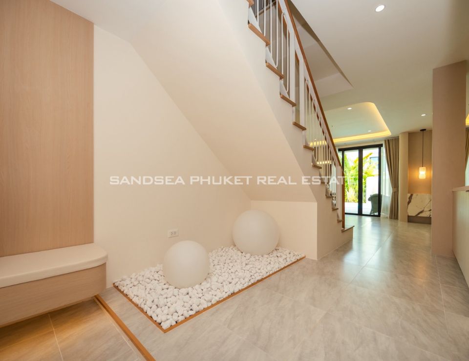 Every facet of this Thalang property is masterfully crafted, with bespoke interiors and a harmonious blend of sleek contemporary lines and warm, cream-toned comfort. Culinary excellence awaits in the superb gourmet kitchen, equipped with top-tier appliances, while the magnificent floor-to-ceiling windows flood the home with natural radiance. Even the most intimate spaces are considered, with a uniquely conceived, curated wellness nook nestled elegantly beneath the staircase, offering a charming personal retreat for quiet reflection within this sophisticated coastal haven.